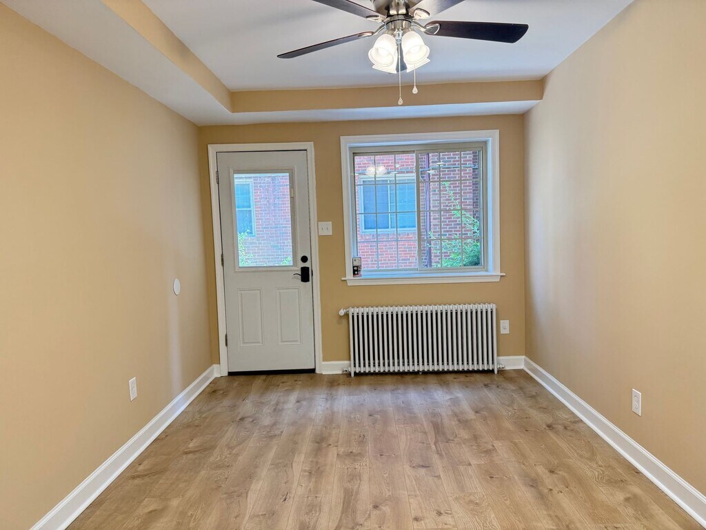 Looking for a newly renovated apartment that’s conveniently located near all the amenities you need? Look no further than our beautiful unit in a small, garden-style brick building! With only six apartments in the building, you’ll enjoy the peace and quiet of a cozy community. Located on the ground floor, this apartment features stunning newly refinished hardwood floors and a brand-new kitchen. There’s even a dining area for all your entertaining needs. Ceiling fans in both the living room and bedroom add comfort year-round. The apartment also includes window unit air conditioners provided free of charge and convenient coin-operated laundry facilities on-site. You’ll be just minutes from shopping, Sligo Creek Parkway, Long Branch Parkway, and public transportation, including direct access to a bus line. Downtown Silver Spring is also close by, offering endless entertainment options. Pets are welcome, and a pet fee applies. Please note the maximum occupancy is two persons. A 1-year lease, 1-month security deposit, and good credit are required. Tenant pays all utilities. Square footage is approximate, so we encourage you to visit in person to see if this apartment is the right fit for you. Contact us today to schedule a viewing!