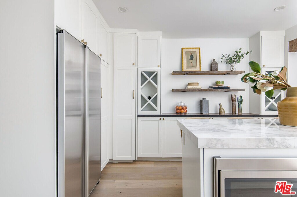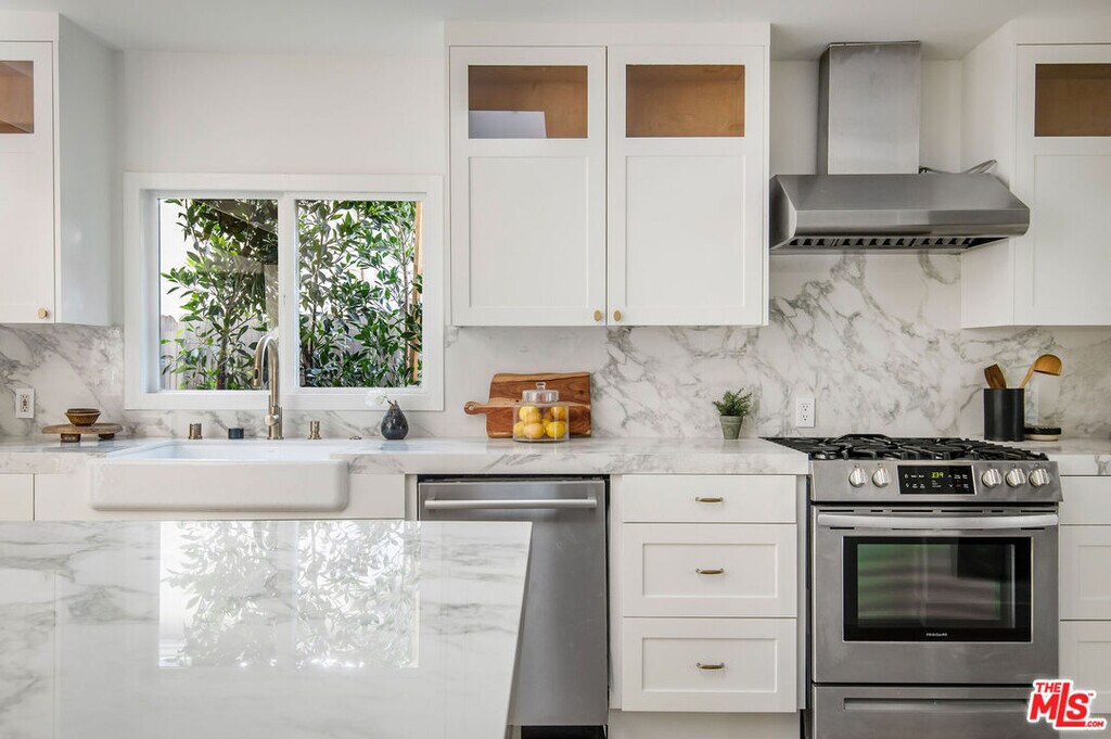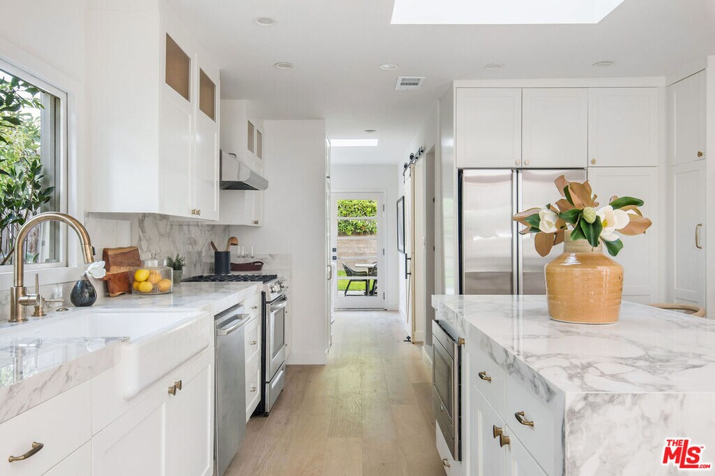 Discover unparalleled sophistication and convenience at 8717 Dorrington Ave, nestled south of Melrose in the prestigious West Hollywood West community. This recently renovated residence spans approx 1,800 sqft on a generous 4,800 sqft lot, featuring three bedrooms plus a detached flex space. Enter through a private, fully-enclosed gateway leading to a charming pathway and off street parking for four plus cars. The interior boasts an expansive open floor-plan, accentuated by a large picture window and skylights that floods the living spaces, enhancing the seamless flow between the family room, dining area, and outdoor spaces. The state of the art chefs kitchen is equipped with a dramatic backsplash, cascading island, and is perfect for entertaining and everyday living. The home's ambiance is enriched by all new european wide plank flooring, chic design elements and over $300,000 in recent upgrades. The primary suite offers a luxurious retreat, complete with a newly designed bathroom and ample closet space. Two additional bedrooms provide comfort and privacy for family and guests, while the detached bonus room is ideal for a home office, gym, or studio. The outdoor area has room for a pool and includes a private yard with mature landscaping, and multiple lounge areas perfect for relaxation and gatherings. Enjoy exceptional walkability with proximity to the trendy Melrose Design District, world-class shopping, restaurants, cafes, and located just minutes from Cedars-Siani and Beverly Hills. MLS# 25606247