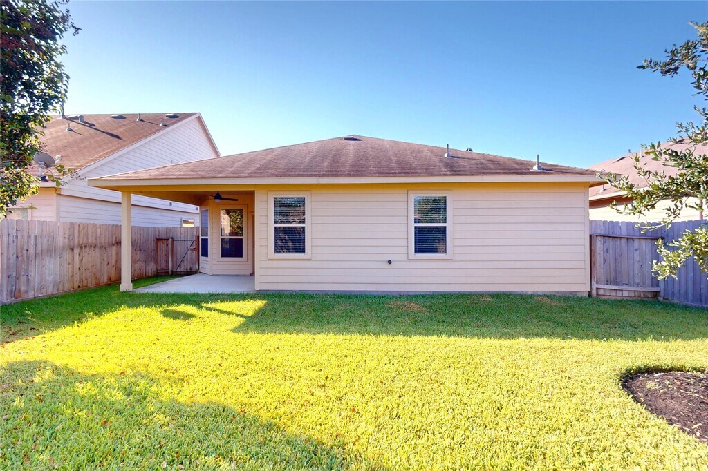 Beautifully maintained single-story home in Saddlebrook Ranch featuring 3 bedrooms and 2 baths. The open split floor plan offers high ceilings and great natural light. The kitchen boasts tile floors,ample cabinetry,a tile backsplash,and stainless-steel appliances,including a gas range and dishwasher,flowing seamlessly into the breakfast and family areas. Enjoy a spacious primary suite with soaking tub,separate shower,dual sinks,and walk-in closet. Two secondary bedrooms feature new carpet and share a full bath. Step outside to a covered patio and landscaped backyard with a full sprinkler system. Conveniently located near Creekside Village Green and the Grand Parkway,offering easy access to shopping,dining,and entertainment. MLS# 65456826