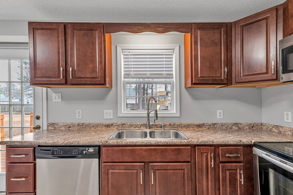 This gorgeous home is like new inside! With fresh paint, new flooring, new blinds, and so much more! Walk through the front door into the foyer. To your right is the living room with fireplace and formal dining area, both featuring updated light fixtures. In the kitchen you will find stainless appliances, tons of counter and cabinet space as well as an eat-in area and pantry. The French door in the eat-in kitchen area leads to the deck overlooking the backyard. Off the eat-in kitchen area you will find the den/family room with fireplace. In this room you will find the laundry closet and a door leading into the 2-car garage. In the hallway between the kitchen and foyer you will find the 1/2 bath for guests. Upstairs you will find four spacious bedrooms and 2 full baths. The master suite features a large walk-in closet and full bath with dual vanities. Located just minutes from area shopping, and the front gate of Camp Lejeune, this home has it all! Call Great Moves Realty at to schedule your showing today!