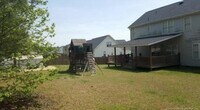 This spacious two-story home features three bedrooms, 2.5 bathrooms, and a bonus room. The main level offers nine-foot ceilings, an open dining room, and an eat-in kitchen equipped with stainless steel appliances and a butler's pantry. The large master suite includes double vanities, a separate shower, and a garden tub. Outside, you will find an expansive backyard with a covered porch and a storage shed on an oversized slab. The property is located in a quiet neighborhood close to shopping.