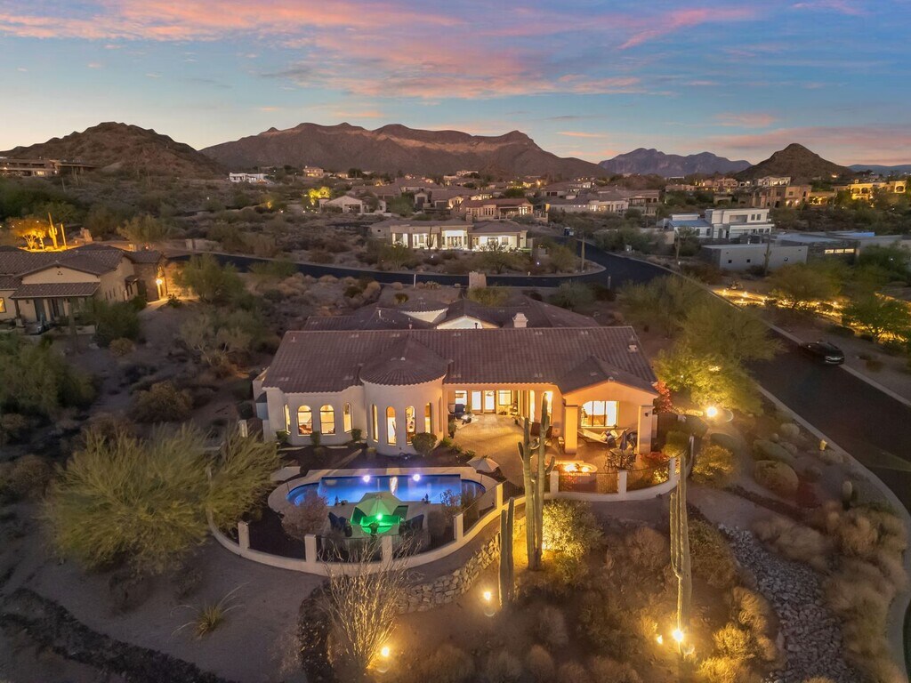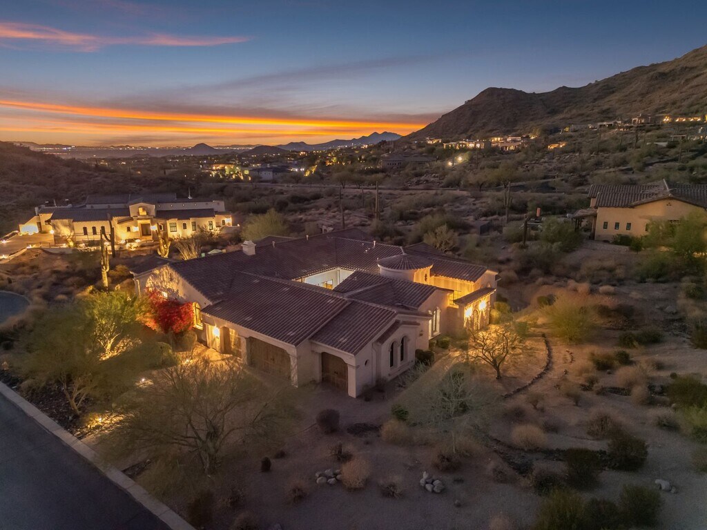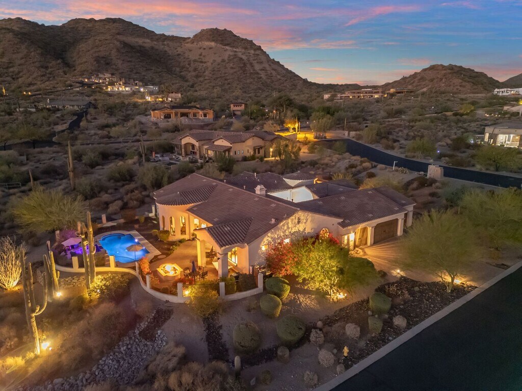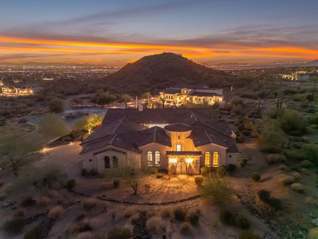 If you are looking for a Custom Home, with the BEST 360 degree views in the Valley, this property is for YOU! Check out this 5 bedroom, 5.5 bathroom w/ Home Gym, 4 Car Garage home nestled on a prestigious cul-de-sac lot in the hills of Las Sendas. This Gated, Mediterranean Style home, on nearly an Acre, is the ultimate in Privacy & Relaxation! Enjoy outdoor living w/ multiple Patios/Courtyard, Heated Pool & Spa, & Gas Firepit. This property has a chef's kitchen with a 6 burner Gas Range, Industrial Refrigerator, Custom 42 in Real Wood Cabinetry & a Perfectly Curated Hood & Pot Filler. Enjoy the City & Mountain Views from the primary bedroom, with an oversized closet, a huge soaking tub, walk in shower & double vanities.
