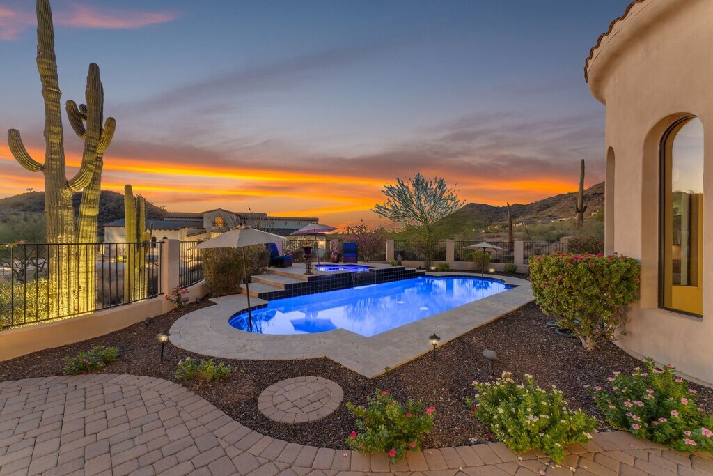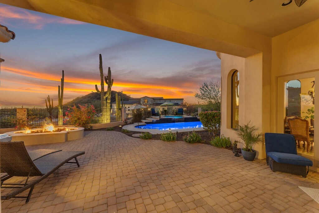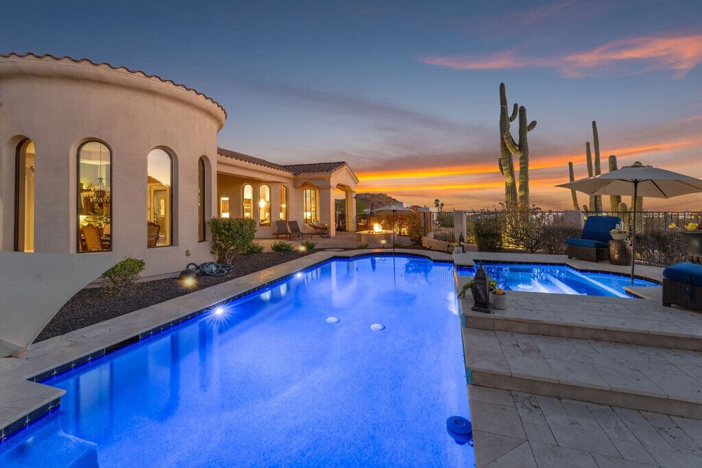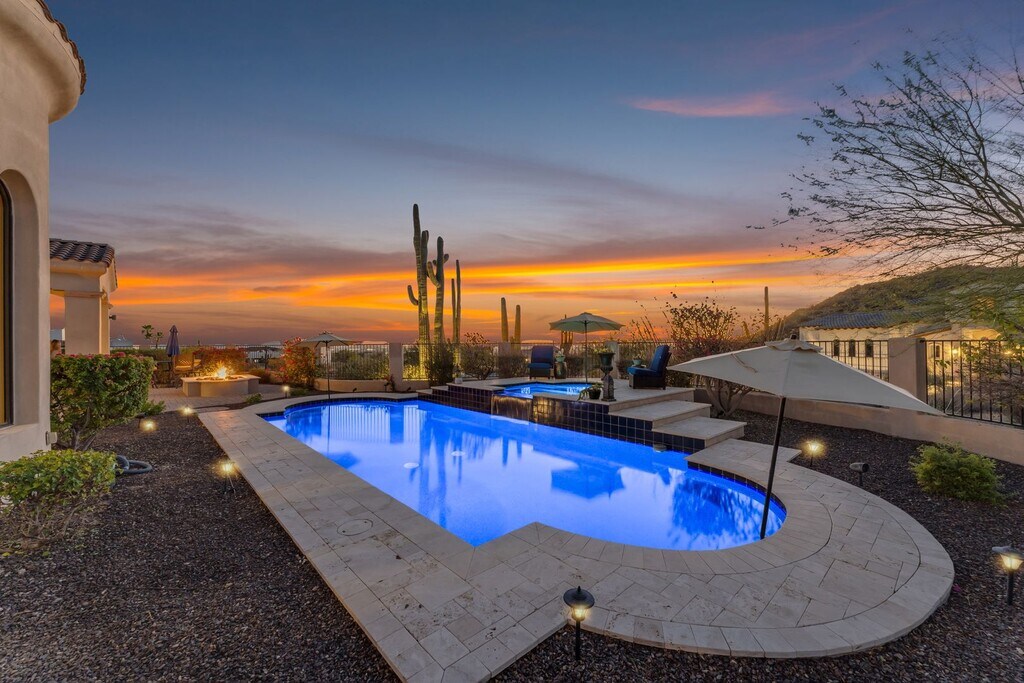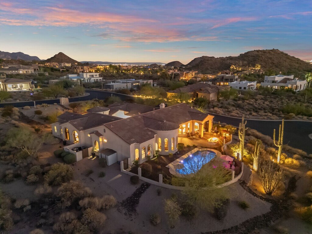 If you are looking for a Custom Home, with the BEST 360 degree views in the Valley, this property is for YOU! Check out this 5 bedroom, 5.5 bathroom w/ Home Gym, 4 Car Garage home nestled on a prestigious cul-de-sac lot in the hills of Las Sendas. This Gated, Mediterranean Style home, on nearly an Acre, is the ultimate in Privacy & Relaxation! Enjoy outdoor living w/ multiple Patios/Courtyard, Heated Pool & Spa, & Gas Firepit. This property has a chef's kitchen with a 6 burner Gas Range, Industrial Refrigerator, Custom 42 in Real Wood Cabinetry & a Perfectly Curated Hood & Pot Filler. Enjoy the City & Mountain Views from the primary bedroom, with an oversized closet, a huge soaking tub, walk in shower & double vanities.