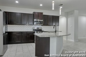 ****MOVE IN SPECIAL!!!!****OFFERING FIRST 2 WEEKS FREE WITH AN APPROVED LEASE AND IF LEASE SIGNED BY NOV 1ST, TENANT WILL GET AN ADDITIONAL $50 OF THEIR MONTHLY RENT FOR 12 MONTHS!!!!***This delightful home features an open-concept layout designed for those who love to entertain. The eye-catching stone-accented front exterior includes built-in flower bed, adding great curb appeal and a perfect opportunity to showcase your green thumb. Just off the foyer, you'll find a second bedroom thoughtfully separated from the rest of the home-ideal for a home office or guest suite. The spacious living area flows seamlessly into the kitchen and dining space, making conversations effortless whether you're cooking or relaxing. Durable tile flooring runs throughout the main living areas and all wet spaces. The corner kitchen is a chef's dream, boasting granite countertops, a subway tile backsplash, coveted gas cooking, ample cabinetry, and pantry for extra storage. Modern lighting and a neutral color palette are featured throughout the home, providing a stylish backdrop ready for your personal touch. The owner's suite is a comfortable retreat, offering contemporary design elements, ample wall space for furniture, and a walk-in closet. The private bath impresses with its clean lines and inviting feel. A creatively styled hallway wall leads to the additional bedrooms, adding a touch of character to the layout. Outside, the corner covered patio and generous backyard offer a blank canvas, ready for your outdoor living vision to come to life. Please be aware some photos have been virtually staged. Loan is assumable. Reach out for more information.