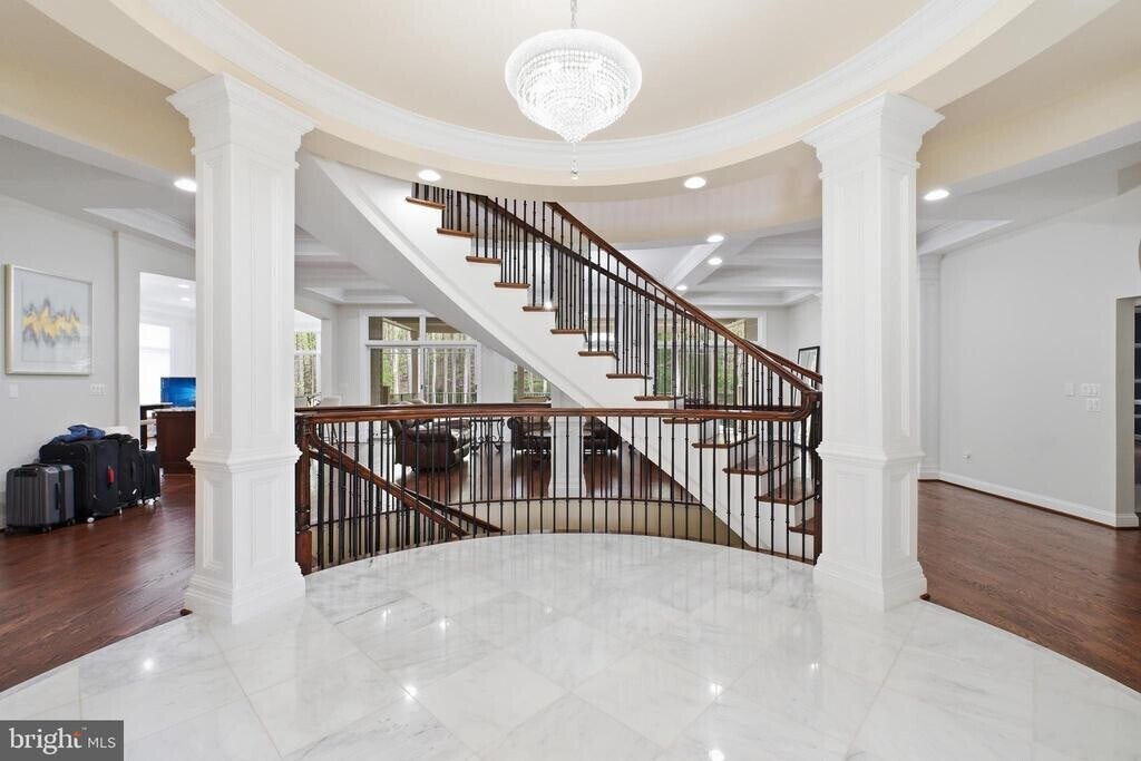 Experience unparalleled scale and sophistication in this 14,800-sq.-ft. masterpiece nestled on a private 1.26-acre sanctuary in Woodside Estates. This 2017-built Colonial features 8 bedrooms and 12 bathrooms across four finished levels, highlighted by a breathtaking foyer with a curved double staircase. Rare amenities include a climate-controlled indoor swimming pool for year-round luxury, a dedicated state-of-the-art home theater, six heated car garages, a 16000-watt Generac generator, and a dual-kitchen system featuring a gourmet primary kitchen plus a full catering galley. The expansive floor plan offers a main-level guest suite, five gas fireplaces, and a walk-out lower level complete with a professional wet bar and fitness suite. Outside, enjoy a tranquil creek-side setting and stone patio, all just minutes from the world-class shopping of Tysons Corner and an easy D.C. commute. The ultimate blend of grand architecture and private resort living.