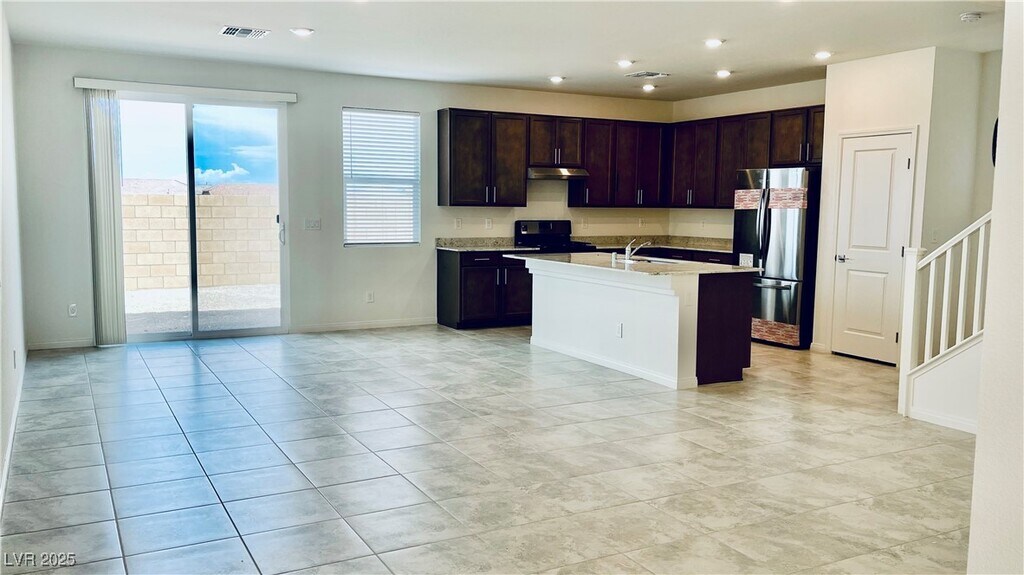 newer home near Rhodes Ranch, 4bedrm 3 bath with 2 car garage, master bath with separate tub & shower, bath2 with extended vanity & cabinets, upgraded stainless steel appliances, 1st floor with upgraded tile, kitchen with upgrade 42cabinets, granite countertop with island, upgrade single basin stainless steel undermount sink, 16 seer air conditioner system with wifi smart thermostat, energy star qualified, Smart Tech Package Included Fiber Optic Ready package. Includes a 30" plastic smart box, dedicated high voltage circuit ran to the smart box (110volt outlet), conduit (smurf tube) ran from the smart box to the electrical panel, cat-6 and RG6 ran from the smart box to the electrical panel, and 2 1+1 outlets located in the Primary bedroom and great room ran to the smart box. fluorescent light in the garage. Mission railing at full stairway. upgrade carpet. extra parking spaces direct across from the house. brand new stainless steel Refrigerator, washer and dryer , blinds thru out."