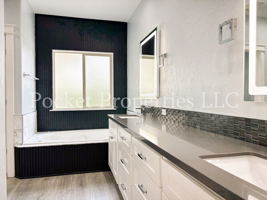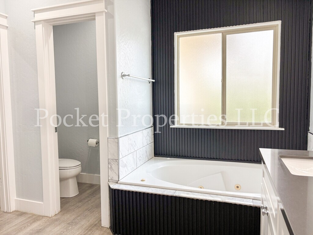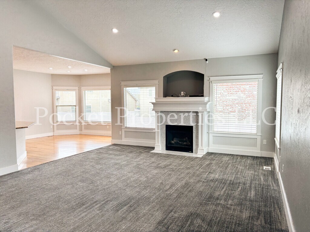 Well-maintained 2950 square foot two-story rental home on a corner lot of a cul-de-sac with mature landscaping, perfect for comfortable indoor/outdoor living. This property has 5 bedrooms, an additional office space and 3.5 bathrooms. The kitchen has plenty of cabinets and pantry storage space, with a dining area nestled next to large windows that overlook the backyard. Stainless steel appliances, solid surface counter tops and a double oven complete this open-concept kitchen. Large windows in the living area bring in natural light that is further highlighted by the vaulted ceilings. The gas fireplace in the living space next to the kitchen makes it cozy and inviting. All bedrooms have large closets with built-ins. Four bedrooms are upstairs, sharing two full bathrooms. All bathrooms have been recently updated, with matching cabinets, solid surface countertops and lighted mirrors. One of the upstairs bedrooms is oversized and could easily be used as a second living space. The downstairs master bedroom suite has an oversized walk-in closet with built-ins. The master bathroom has dual vanities with a jetted tub, walk-in shower and separate toilet room. The master bedroom also has a backyard access sliding door. Separate laundry room and/or mudroom with an entrance from the garage. Three car garage and ample parking in the driveway. The third bay of the garage has a 10-foot-tall door and is 37 feet deep with a backyard access second rear garage door. Fully fenced yard with back patio. Permanent Christmas lighting has been installed for your year-round use. The property is also equipped with a full surveillance system that does not require a subscription. Property is in a quiet neighborhood near Meridian Rd and Victory Rd, just a 10-minute drive to downtown Meridian and 20-minute drive to downtown Boise. Central air conditioning and heat.
