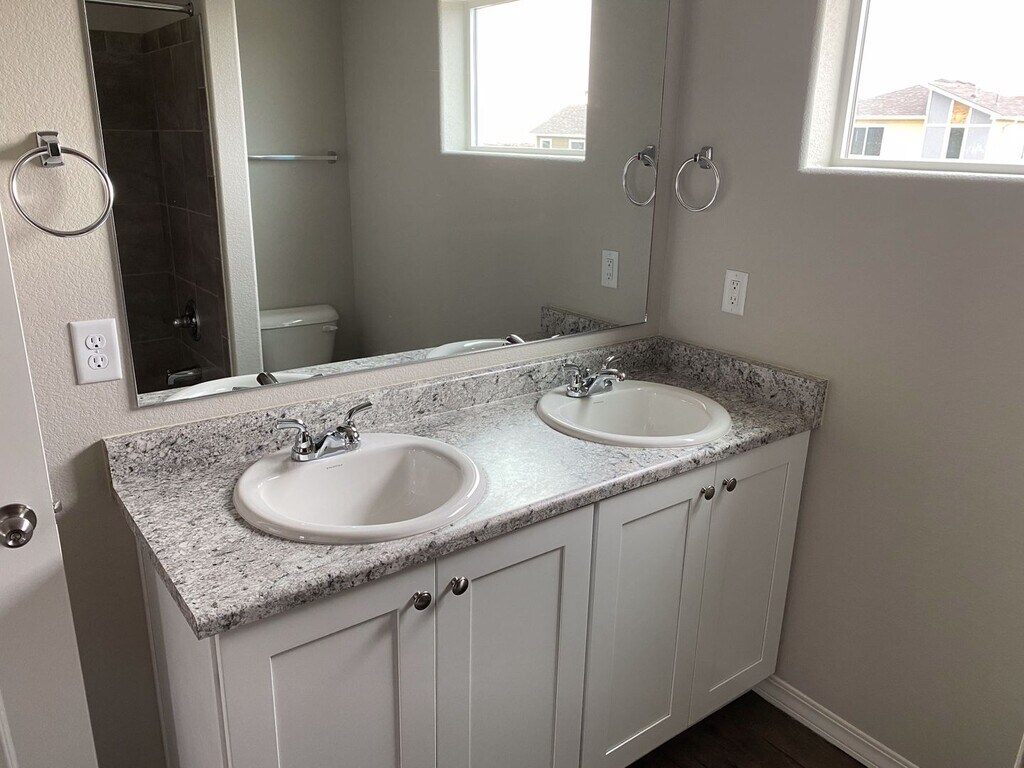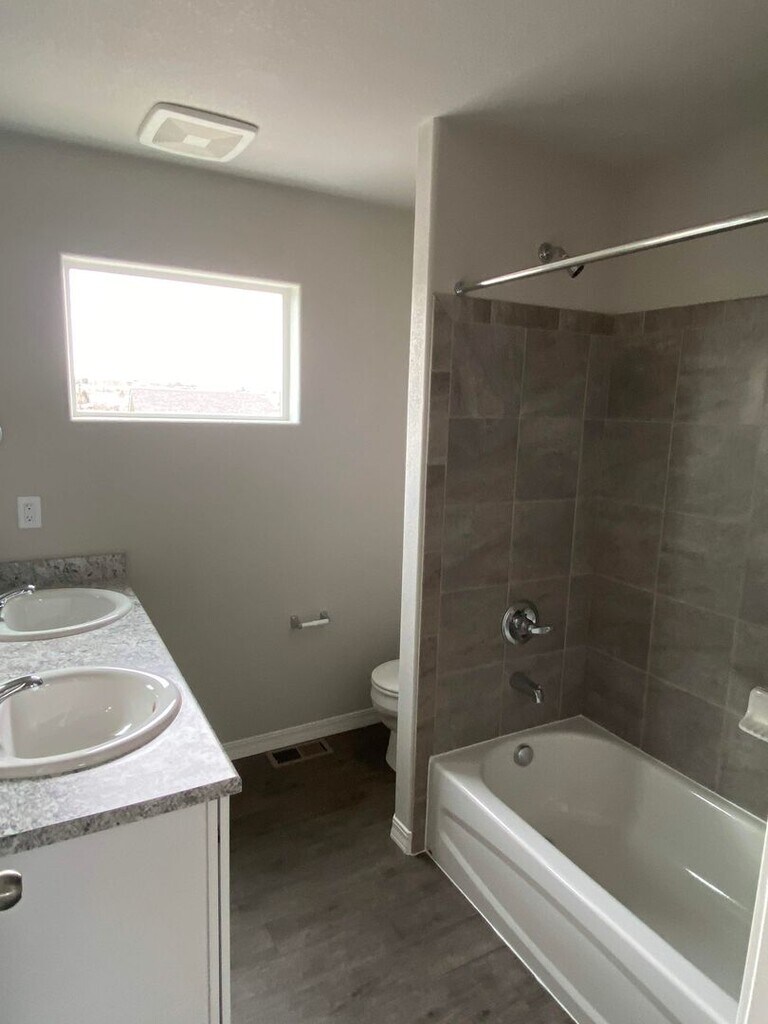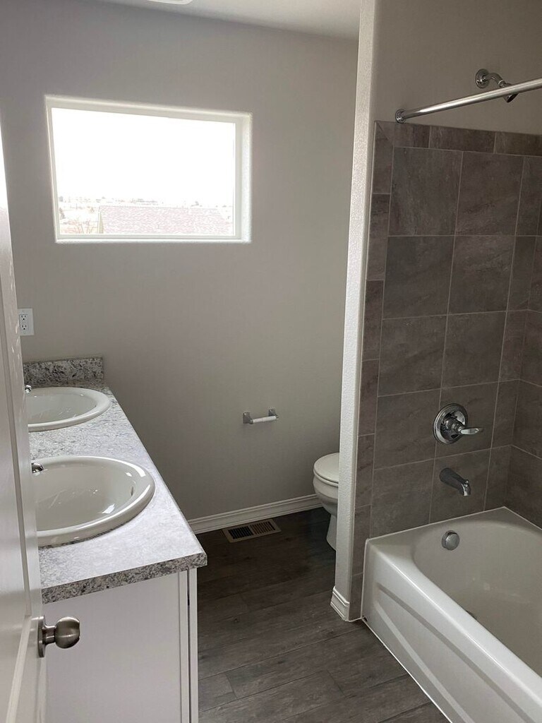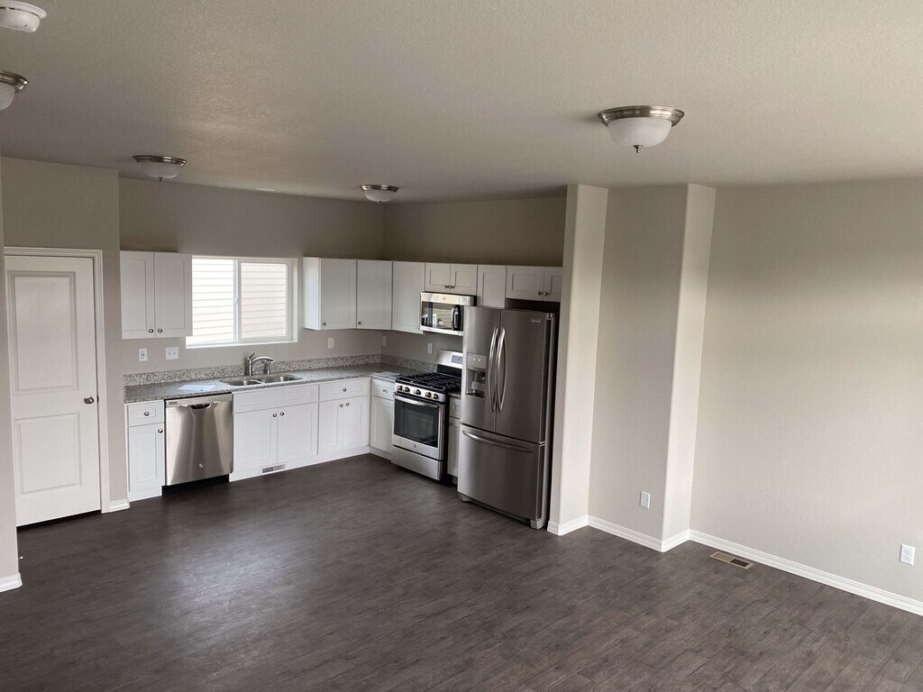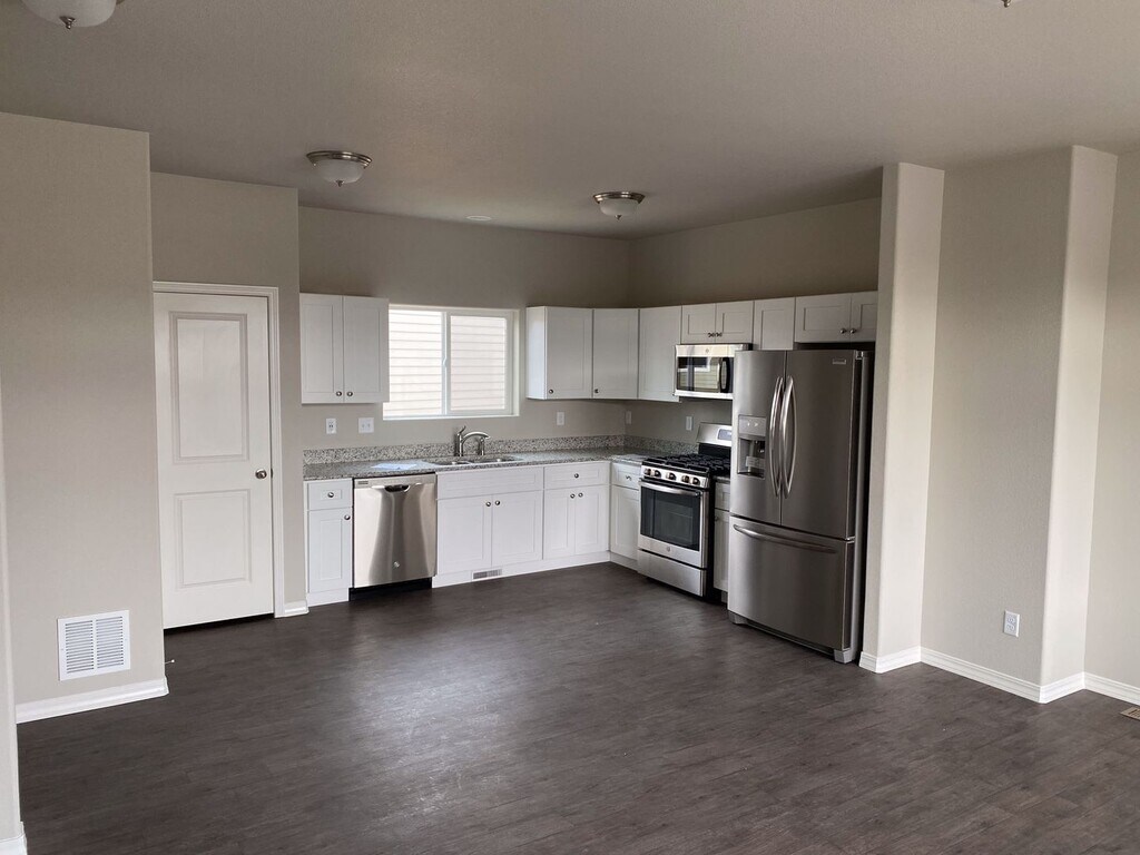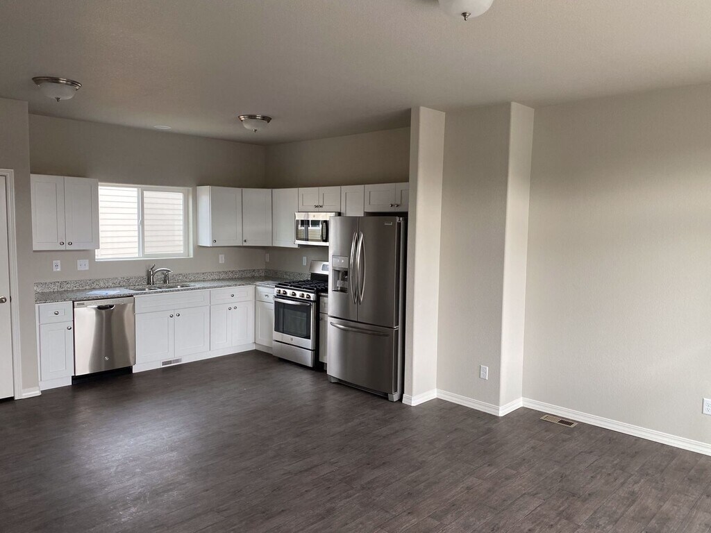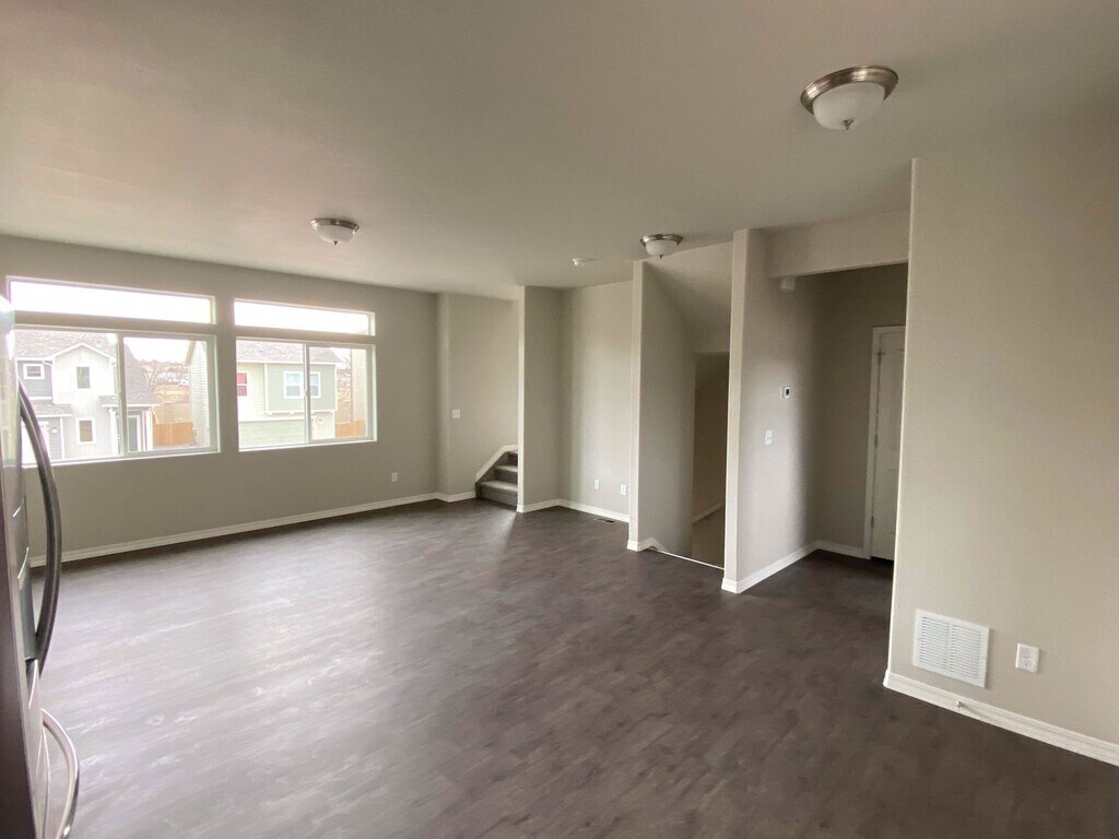 Almost new home is a great location close to Petersen AFB. Located near Powers and Galley with easy commutes to Schriever, Peterson, or Fort Carson. You will love the ultra modern design and well kept community this home is located in. The main level features LVP Flooring throughout and a wonderful open and bright feel. Modern kitchen with stainless steel appliances and plenty of counter and cabinet space. There is also a bathroom on the main level that has a shower. All 3 bedrooms along with a full bathroom on the upper level. You will love the modern paint and carpet colors and best of all, being the first to ever occupy this home means super clean environment. Washer and dryer included on the main level. Nice fully fenced yard out back. Central air, attached garage, newly landscaped and fenced yard, close to restaurants, shopping, entertainment and parks. To schedule a showing or to apply visit