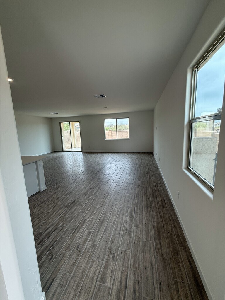 This is a great floor plan! This home is new construction with 9' ceilings with an expansive Great Room. All granite counter tops in the kitchen and baths. The kitchen contains all stainless steel appliances with an island sink and is upgraded for a gourmet kitchen experience. The upgraded washer and dryer are included as well. The primary bath has a walk-in shower and large walk-in-closet. There is also a den that can suit multiple options as a office, play area or 4th bedroom. The backyard has a covered patio and backs to open space! The 2 car garage provides plenty of extra space for storage. The location is excellent and will be within walking distance to the new recreation center being built and ready in Feb/Mar of 2026. Sahuarita is a great Master Planned Community for growing families, plenty of amenities and close to Tucson for everything else.
