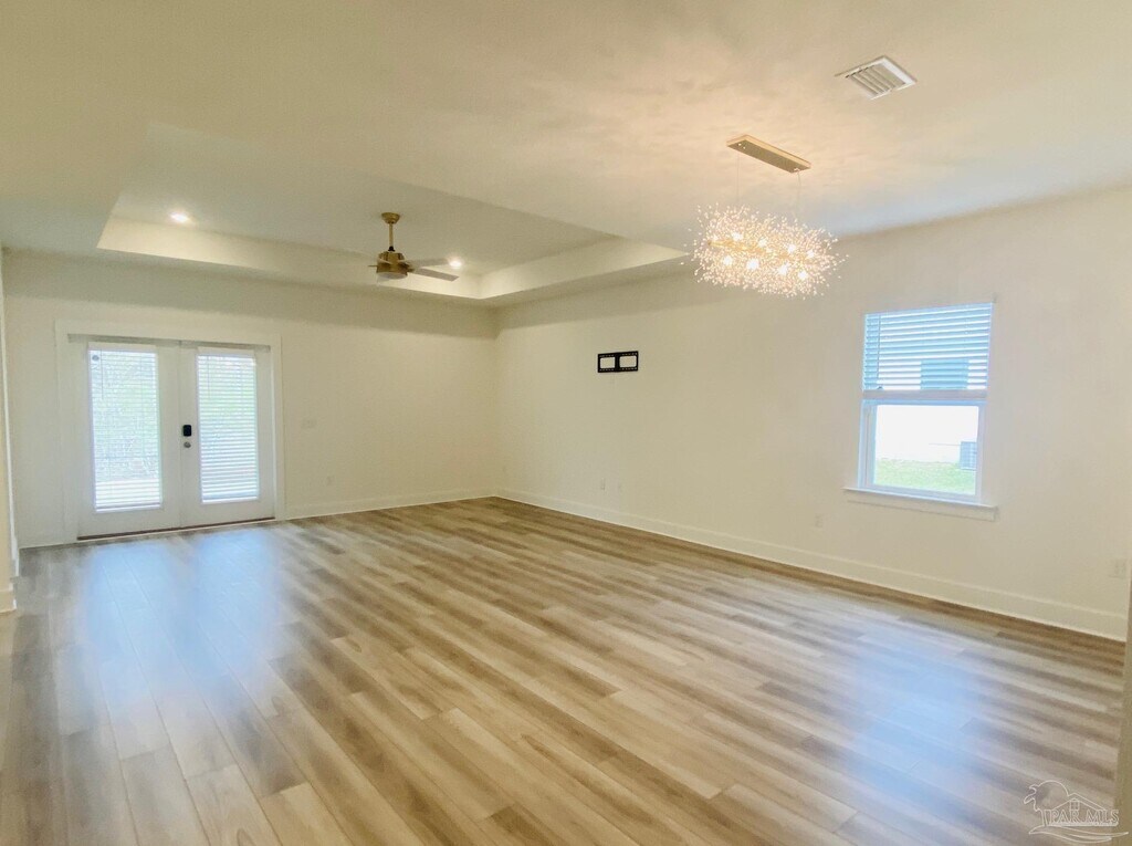 This spacious 4-bedroom,3 full bathroom home offering over 2,000 square feet of living space delivers both functionality and comfort with a layout that works for a variety of living situations. The home features a large open kitchen,dining,and living area with plenty of room to spread out,highlighted by a statement lighting fixture over the dining space that adds a modern touch. The kitchen offers ample counter space,storage,and flow into the main living area — ideal for everyday living and entertaining. The primary suite is privately situated and designed for comfort,featuring a garden tub,separate walk-in shower,double vanity,water closet,and a dedicated walk-in closet. One of the additional bedrooms includes its own en-suite bathroom,making it perfect for guests,extended family,or a private office setup. Two more bedrooms are connected by a shared hall bathroom,creating a practical and flexible layout. All bedrooms include ceiling fans for added comfort. Additional highlights include a double garage with built-in storage shelving and a large open backyard offering plenty of space to enjoy the outdoors. Well-suited for residents who appreciate a well-maintained living environment,this home combines space,smart layout,and everyday functionality — schedule your showing today. Pets allowed with pet screening and owner approval. Visit to apply online. $75 Application fee per adult,half off for active-duty military. Subject to credit check,background check,employment verification,and rental verification. CERTIFIED Funds!