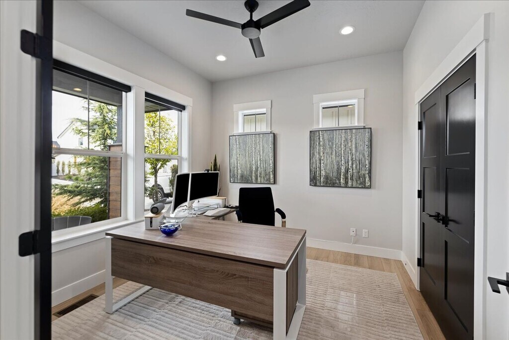 Welcome to this stunning creekside 4-bedroom (plus office), 3-bathroom home in the highly sought-after Dry Creek Ranch community of Garden City. Built in 2021 and offering over 3,000 square feet of living space, this home combines modern luxury with thoughtful design. With a spacious open floor plan, soaring ceilings, and large windows overlooking the natural preserve, it’s the perfect setting for both everyday living and entertaining. The gourmet kitchen features quartz countertops, a large island, built-in appliances, breakfast bar, and walk-in pantry, seamlessly connecting to the great room and dining space. A cozy fireplace and wall of windows add warmth and brightness. The main floor also boasts a private office/den, ideal for working from home, and a luxurious primary suite with a spa-like bathroom, dual vanities, walk-in shower, and generous closet. Upstairs, you’ll find three additional bedrooms, a full bathroom, and a large bonus/flex space that can serve as a media room, playroom, or second office. Step outside to a beautifully landscaped yard with full fencing, sprinklers, and a covered patio. With no backyard neighbors, you’ll enjoy both privacy and scenic views. A spacious three-car garage provides plenty of storage and convenience. Residents of Dry Creek Ranch enjoy outstanding community amenities, including a clubhouse, pool, walking paths, equestrian center, and neighborhood farm. Located within the Eagle School District and close to trails, the Boise River Greenbelt, downtown Eagle, and shopping and dining, this home offers both tranquility and convenience. Seeking a 6-8 month lease agreement. Please inquire with Dapper Residential for a private showing.