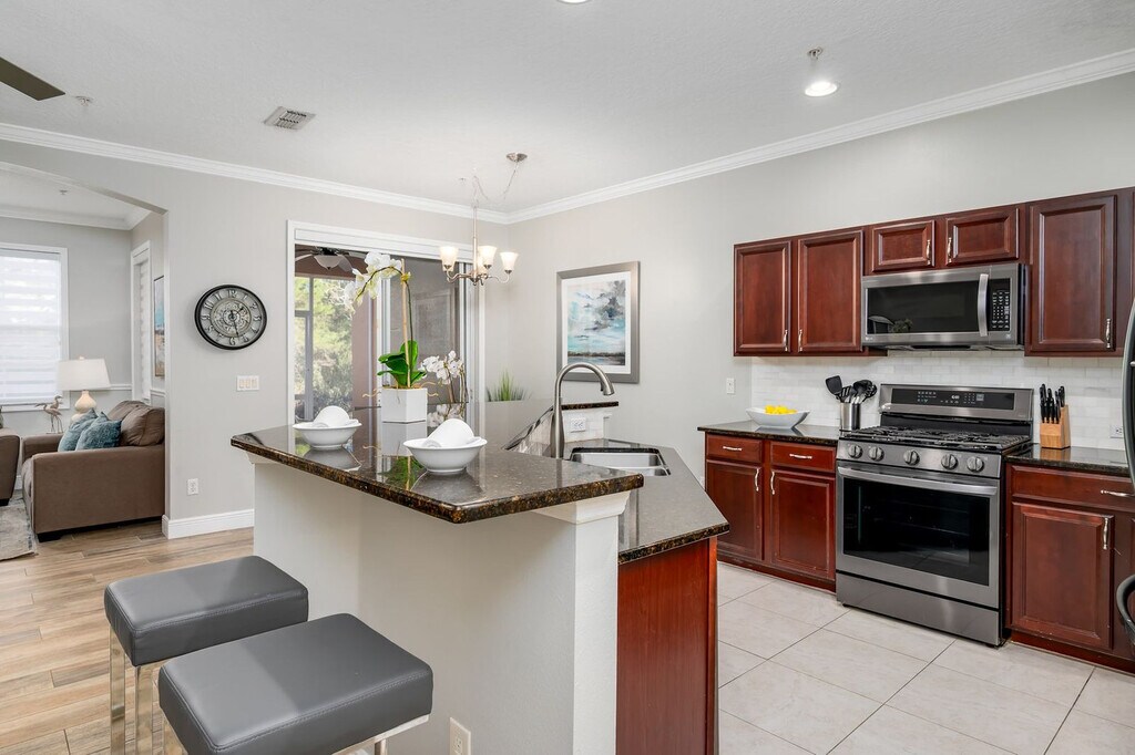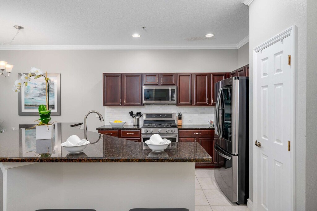 The advertised rate of $1,922/month is the lowest available price, based on a 30 day(s) stay with a move-in date of August 23, 2026. Rates vary depending on the duration of stay, season, and other parameters. For exact pricing and additional pricing components, please visit our website and enter your desired move-in and move-out dates. The rate is applicable when billed upfront; it can be higher if billed in multiple payments. Experience a luxurious Orlando retreat and feel at home in this spacious townhome, perfect for families and groups. This property sleeps 8, and it has 3 bedrooms, 4 beds, and 2.5 baths. The townhome features a large living area with a free washer and dryer, and a full kitchen with stainless steel appliances. Enjoy the indoor, covered patio and balcony for relaxation and outdoor dining. Parking can accommodate up to 2 vehicles in the parking lot. Nestled in the Reunion community of Kissimmee, this townhome is centrally located and a short drive from Orlando’s top attractions: Magic Kingdom is just 8 miles away, SeaWorld 15 miles, and Universal Studios 20 miles. The central location makes it easy to explore theme parks, dining, and shopping while returning to a peaceful home base. There is absolutely no smoking and no drugs allowed inside the home or elsewhere on the property. Only the number of guests indicated on the reservation are allowed to stay overnight, unless otherwise agreed upon in written form. Be considerate while socializing outdoors after 10pm and before 8am, and keep excessive noise to a minimum during this time. No fireworks of any kind. No firearms are allowed on the property, unless kept locked in a vehicle. Check-out time is 10AM, and late check-outs may incur a fee of up to $300. [SI]