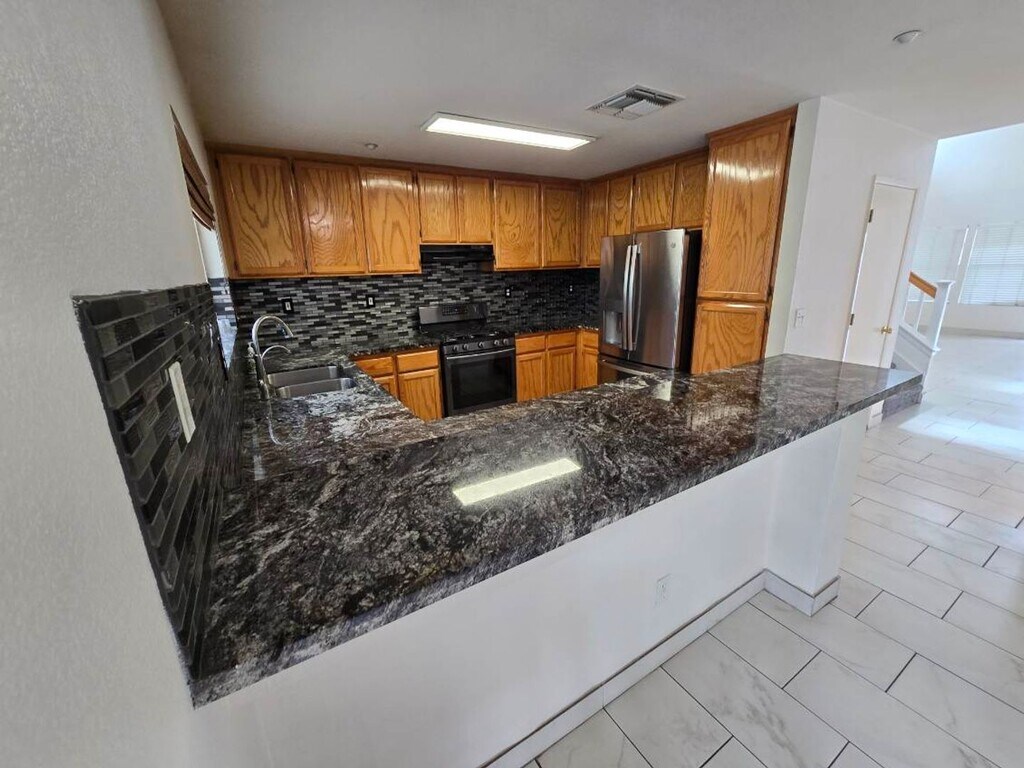 Step into this bright and inviting home featuring a spacious layout with well-defined living and dining areas designed for both comfort and functionality. Large windows bring in abundant natural light, while neutral tones and sleek tile flooring create a clean, modern feel throughout the main living spaces. The kitchen opens directly to the dining area, offering a practical and efficient layout with ample cabinetry and workspace—ideal for everyday meals and easy entertaining. Just beyond, the separate living area provides a comfortable space to relax, giving the home a more traditional and private feel. Sliding glass doors off the dining area lead to the backyard, creating a seamless indoor-outdoor connection perfect for gatherings or quiet evenings outside.