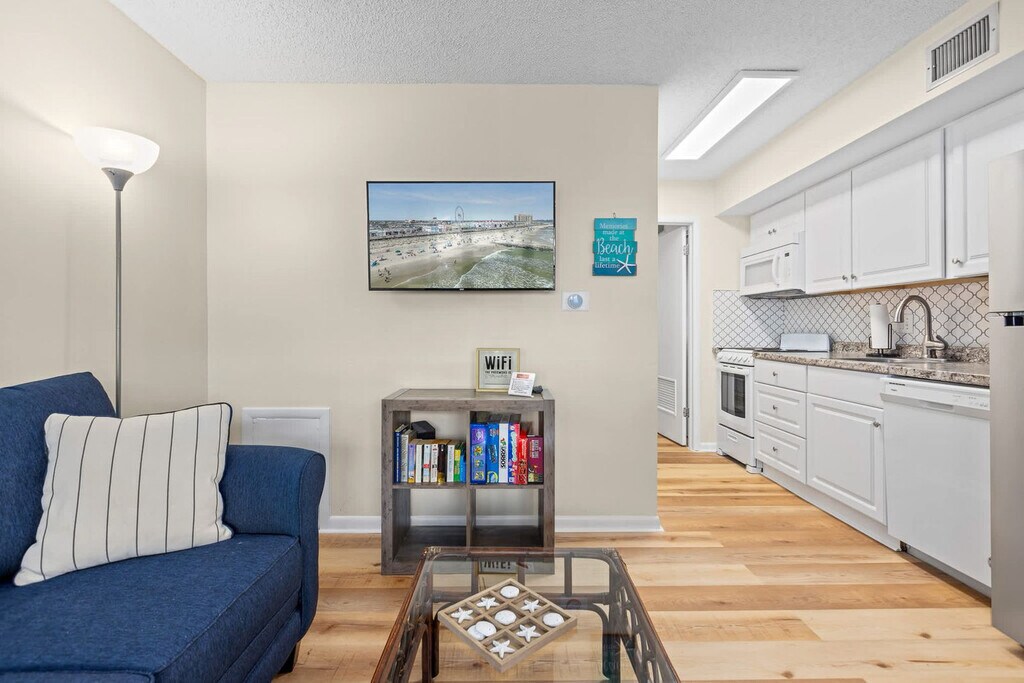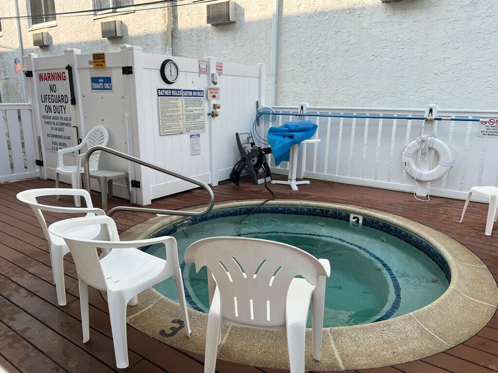 Feel at home in this sanctuary nestled just steps away from the pristine beach and vibrant boardwalk of Ocean City, NJ. This condo offers unbeatable convenience, being mere moments from the sandy shores and endless entertainment along the famous Ocean City boardwalk. This carefully curated and professionally managed condo ensures a memorable stay, creating a perfect blend of comfort, functionality, and relaxation. It features an open-concept living area with plush seating, a large TV, and plenty of natural light. The fully equipped kitchen includes all cookware and dishes, a toaster, a blender, and a Keurig coffee maker. Enjoy the open balconies to relax and enjoy the ocean breeze. A washer and dryer are on site for easy laundry during your stay. This condo is equipped with central heating and air. Enjoy a dip in the community outdoor pool, typically open late May through early September. Off-street parking is available for one vehicle, and ample free and metered street parking is available in the neighborhood. Located in a serene residential area, the condo offers easy access to the best of Ocean City. Just steps from the beach and boardwalk, guests can enjoy sandy shores, oceanfront fun, and a variety of local dining and shopping options. With endless family-friendly attractions nearby, this condo provides a perfect blend of relaxation and convenience for an ideal Jersey Shore getaway! Quiet hours are between 10 pm and 8 am. Guests must be respectful of neighbors, other guests, and the overall community at all times. Any disturbance incident that results in police involvement may result in the immediate termination of a reservation and removal from the rental without refund or warning. There is a zero-tolerance policy. All properties are absolutely no smoking of any kind, including cigarettes, cannabis, and vapes/e-cigs. Any evidence of smoking will be automatically billed an additional cleaning fee. Guests are fully responsible for any damage, excessive cleaning, or disturbances caused by their pets during their stay. By bringing a pet onto the property, you agree to assume all liability for your pet's behavior and to indemnify and hold harmless the property owner and management from any claims or damages arising from your pet. Guests with pets are 100% responsible for keeping their pet under control at all times. Size/weight and breed restrictions may apply. For listings marked “no pets,” this is strictly enforced. If you have a service animal, we kindly ask that you book one of our pet-friendly listings. [SI]