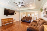 Welcome to 875 Water Cress Way, a beautiful 4-bedroom, 2-bathroom home located in the desirable town of Hahira, GA! This 1,690 sq. ft. home sits on a .27-acre lot and offers modern style, comfortable living spaces, and thoughtful details throughout. Step inside to discover an open, split floor plan featuring durable LVP flooring and a spacious living room with a tray coffered ceiling and ceiling fan. The kitchen is a true standout, offering modern white cabinetry, granite countertops, a stylish tile backsplash, and a large island that provides extra counter and storage space. Stainless steel appliances—including a stove, refrigerator, dishwasher, and microwave—add to the sleek appeal, while vaulted ceilings with exposed beams and recessed lighting create an inviting atmosphere. The kitchen opens directly to the dining area, making it perfect for entertaining or everyday meals. The master suite features soft carpet flooring, a tray ceiling with ceiling fan, and a large walk-in closet. The master bathroom includes granite countertops, a tub/shower combo, and extended vanity space for added convenience. The additional bedrooms also feature carpet flooring and ceiling fans for comfort, and the guest bathroom continues the home’s modern finishes with granite counters and a tub/shower combo. Enjoy Georgia’s mild seasons on the screened-in back porch or the extended back patio overlooking the fully fenced backyard—ideal for relaxing outdoors or spending time with pets. A covered front porch, 2-car garage, and proximity to I-75 add even more convenience. This home is pet-friendly and designed for both comfort and style. Apply online today to save your spot in line! Available for move in 1/23/2026 Check out key beginning 1/16/2026 at our office Mon-Thu:9am-4pm, Fri:9am-3pm w/$20 deposit required, returned when the key is returned & must provide a valid driver's license/i.d. and phone number