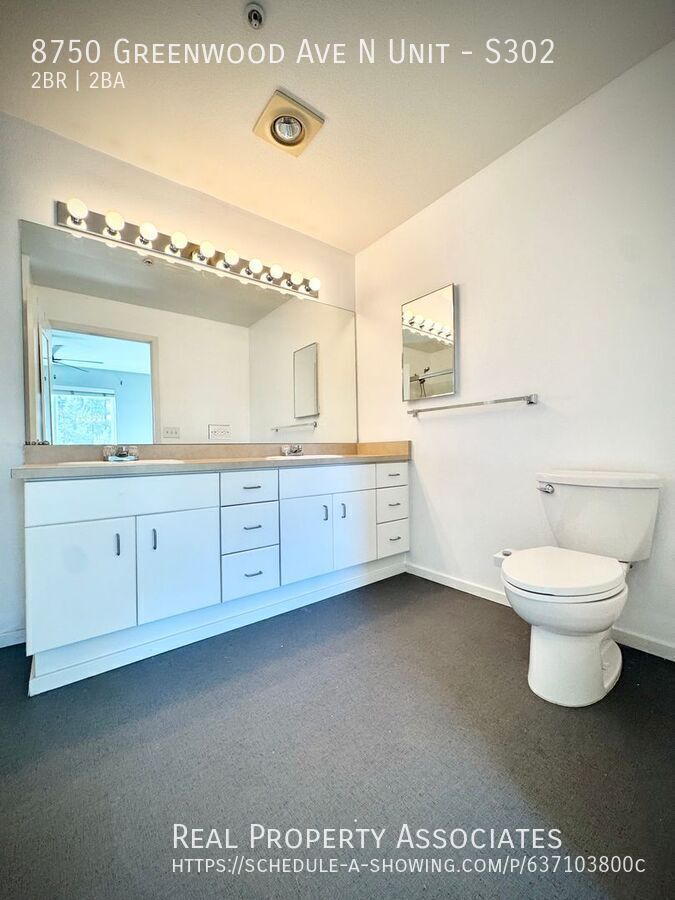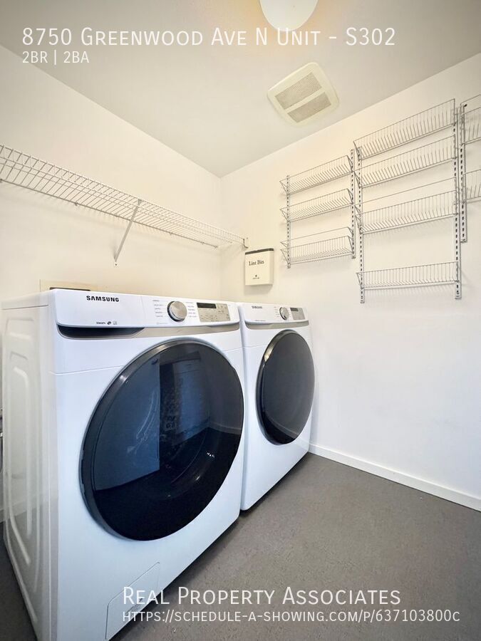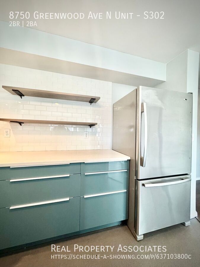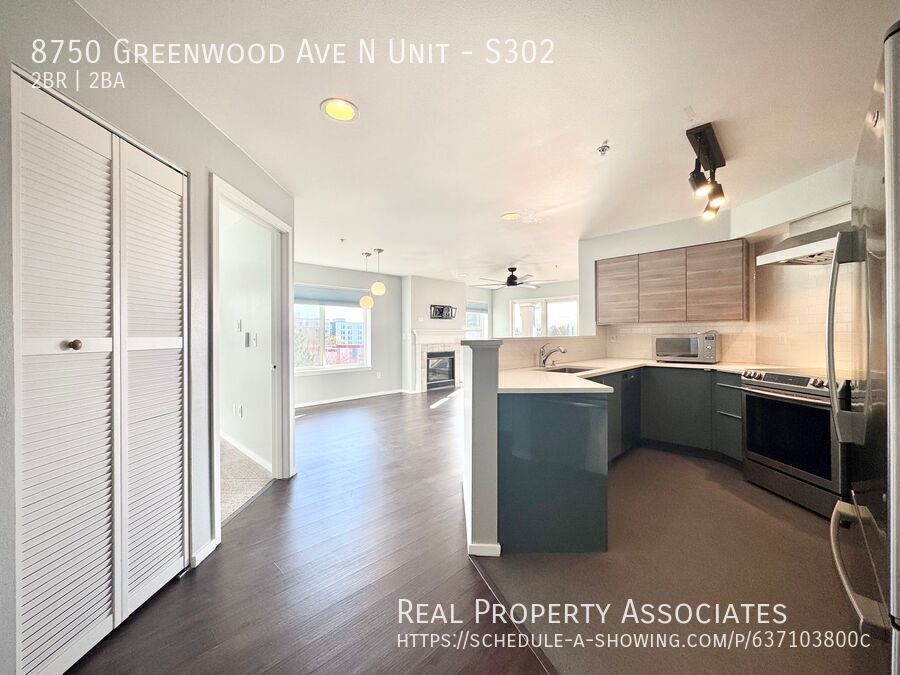 Welcome home to this beautifully updated 2-bedroom 2-bathroom condo in the heart of Greenwood, Seattle-one of the city's most sought after neighborhoods! This spacious and light-filled home features vinyl plank flooring throughout the main living areas, a cozy gas fireplace, and a private balcony perfect for enjoying your morning coffee or evening unwind. The open-concept kitchen is equipped with modern appliances, including a microwave, stove, oven, garbage disposal and a stunning large farmhouse style sink that adds the perfect touch of charm. Enjoy the convenience of in-unit washer and dryer (inside a seperate laundry room!), with portable air conditioning available for year-round comfort. Additional perks include a TV mount, dedicated garage parking and extra storage! This unit is located just steps from Trader Joe's, Fred Meyer, QFC, plus there's a Kiddie Academy right across the street....no more driving the kiddos to daycare! Pet's Allowed (case by case) Don't miss the opportunity to live in this bright, modern condo in an incredible Seattle location! $100 Per Person Per Month For Water/Sewer/Garbage Dogs Accepted On Case By Case Basis