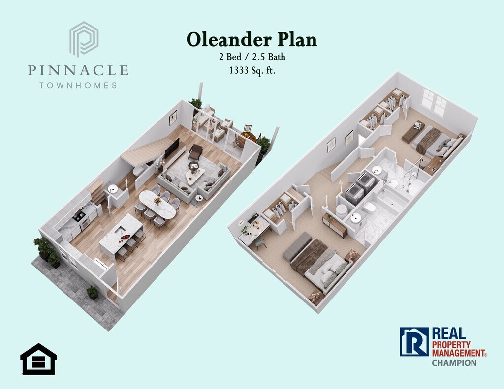 Units available from $1,750/mo. to $1,950/mo. with available discounts, promotions and concessions applied. Zero Security Deposit option available for qualified applicants. Restrictions may apply, contact us for details. The Oleander Plan is a 2 BD/2.5 BA luxury townhome located in the newly constructed community of The Pinnacle Townhomes. The lower level offers an open concept floor plan for the main living areas. The kitchen includes granite counters, ample cabinets, full sized pantry and is anchored by an island with a breakfast bar and pendant lighting. All appliances are stainless steel, and the stove and refrigerator are WiFi connected using the Samsung SmartThings App. Beautiful flooring flows seamlessly from the kitchen through the dining and living areas. A powder room is conveniently located on the main level. Expansive patio doors take full advantage of the natural light and allow access to the covered patio and private courtyard. The upper level features a master bedroom with two walk-in closets and a private full bath with step-in shower. The second bedroom includes a private bath with tub/shower combo. The laundry closet is conveniently located on the upper level near the bedrooms. Additional features of the Magnolia include recessed lights, ceiling fans and 2” window blinds throughout. Pinnacle Townhomes has some of the largest and best appointed rental units in the area. Make sure to schedule a showing with us to see for yourself. Schedule a Showing: Virtual Tour: We are an Equal Housing Opportunity Management Company and abide by the term of the Federal Fair Housing Act. Pets allowed with prior approval and required pet fees. All applicants over 18 years of age are subject to a background check, including criminal, credit, employment verification, and past tenancy.
