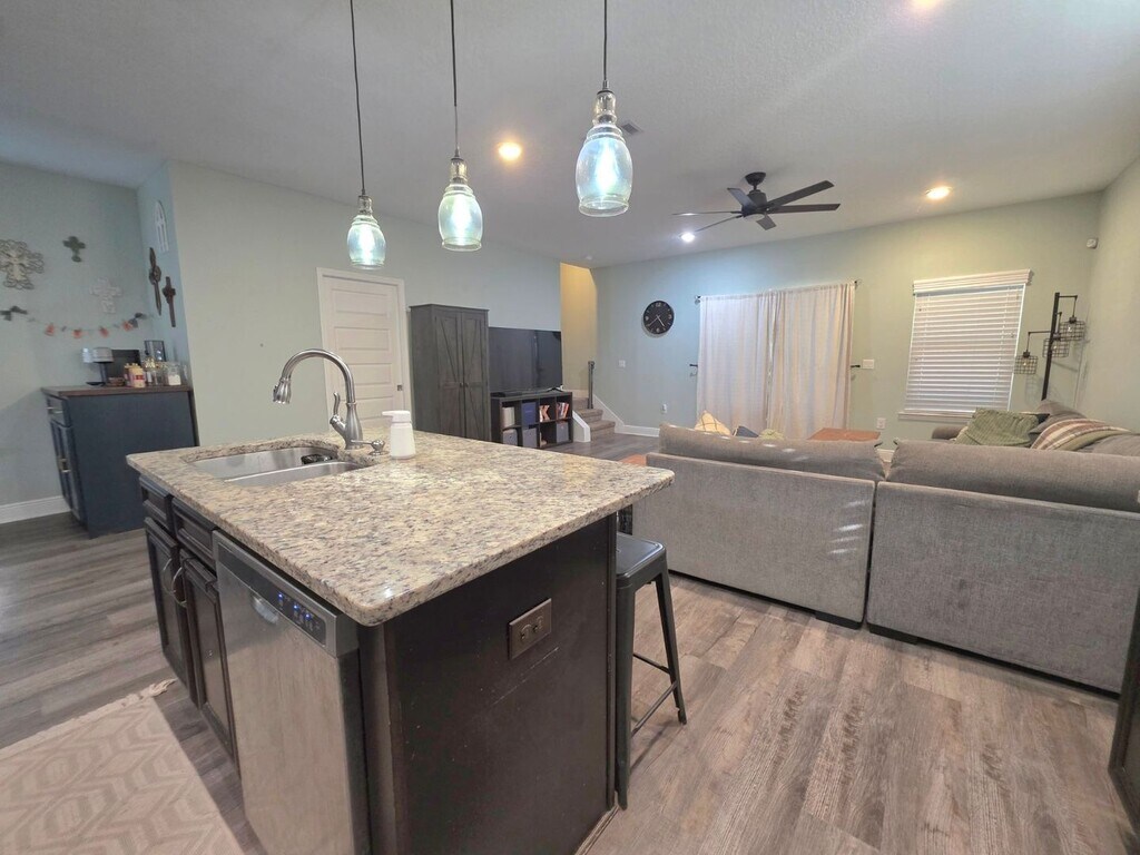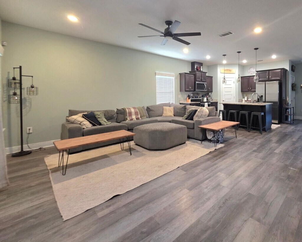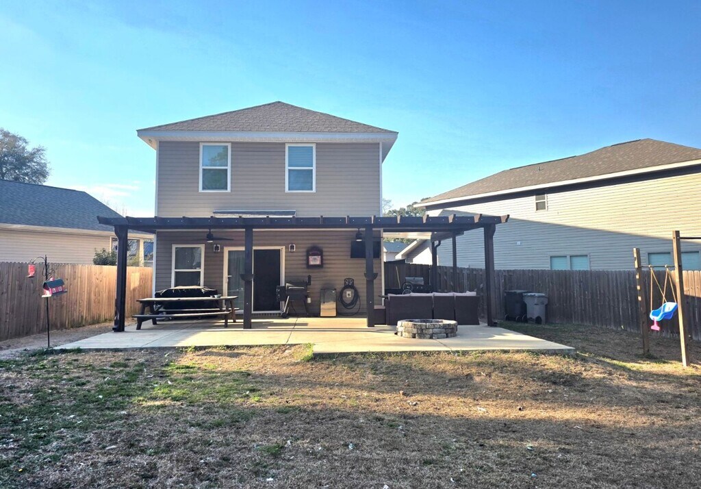 Experience the allure of modern living in this impeccable, home nestled in the vibrant and expanding Pensacola area. Enjoy the convenience of vinyl plank flooring throughout the main level, complemented by granite countertops in a spacious kitchen that features stainless steel appliances, an island with additional seating, a pantry, and stylish pendant lighting. The layout includes a cleverly designed half bath on the first floor with a pocket door to optimize space, and every window is adorned with 2-inch faux wooden blinds, enhancing both privacy and aesthetic appeal. Upstairs, relax in the expansive 19' x 13' master bedroom, which boasts a generous walk-in closet. Outside, the entertainment possibilities are endless in the large backyard enclosed by a privacy fence, perfect for gatherings and active play. Additional concrete in the front yard expands parking availability. Don’t miss your chance to make this your home! No cats and dogs approved by owner approval only. $75 App fee per adult, half off for active-duty military. Subject to credit check, background check, employment verification, and rental verification. CERTIFIED Funds required for move in.