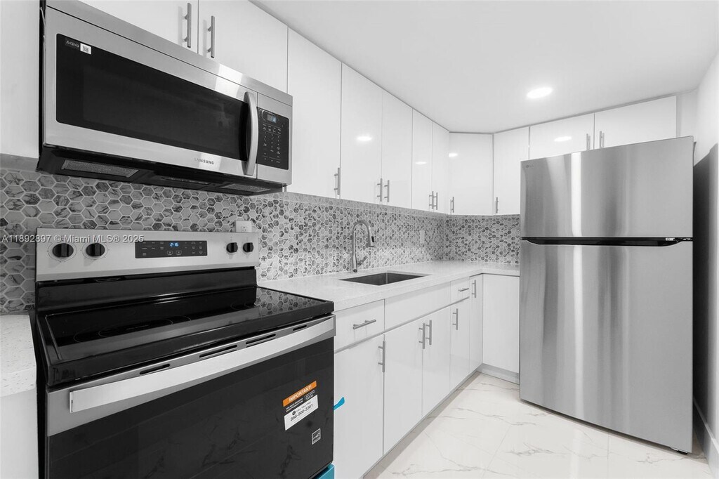 Beautifully renovated 2 bedroom, 1 bath apartment in the heart of Westchester! This bright and modern second floor unit features a spacious open layout, brand new kitchen with stainless steel appliances and quartz countertops, updated bathroom, and sleek tile floors throughout. Enjoy a private balcony, assigned parking, and convenient on-site washer and dryer. New impact windows will be installed in about two weeks, adding comfort and energy efficiency. The building is well maintained with secure entry and lush landscaping. Prime location near FIU, major highways, shopping, and dining just minutes from Coral Way and 87th Ave. Move-in ready and easy to show!