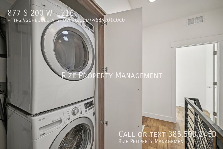 Experience vibrant city living in this modern 2-bedroom, 3-bathroom condo located in the heart of Salt Lake City, UT. Enjoy stunning city views from your private balcony and take advantage of the outdoor lounge spaces. This home features a gas furnace, central air conditioning, washer and dryer and garage parking for your convenience. With ample closet storage and a sleek design, this condo offers the perfect blend of urban living and comfort. Home also includes solar panels to help with the costs of utilities. Don't miss out on the opportunity to live in this dynamic city community. Easy to tour, call Animal friendly up to two animals maximum Resident responsible for renters insurance and all utilities including: - $11 per month utility billing fee - $150 Water, Sewer, Trash - Gas and Electric will be billed based on usage - $100 Common Area Maintenance Breed Restrictions will apply-Akitas, American Staffordshire Terriers, Chows, Presa Canarias, German Shepherds, Rottweilers, Pit bulls, Doberman Pinchers, Wolf or Wolf Hybrids; or any mix of these. **The only exception to this policy would be for animals that are designed as service/assistance animals. Assistance animals must be approved with required documentation** Move in Fees consists of: $350 non-refundable cleaning fee $250 non-refundable lease initiation fee Condo