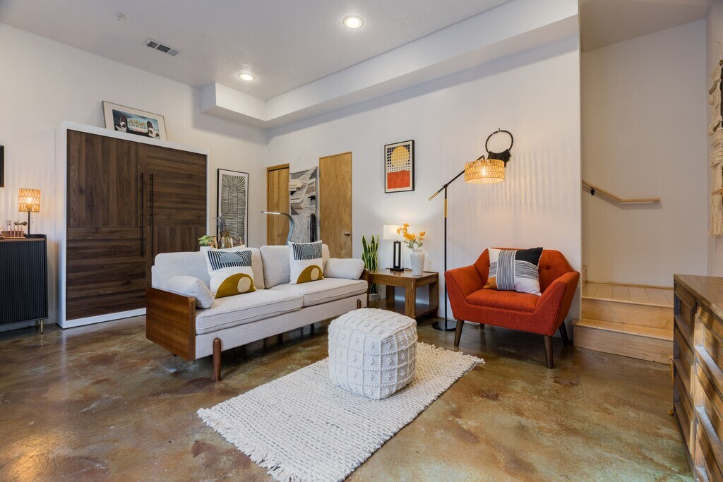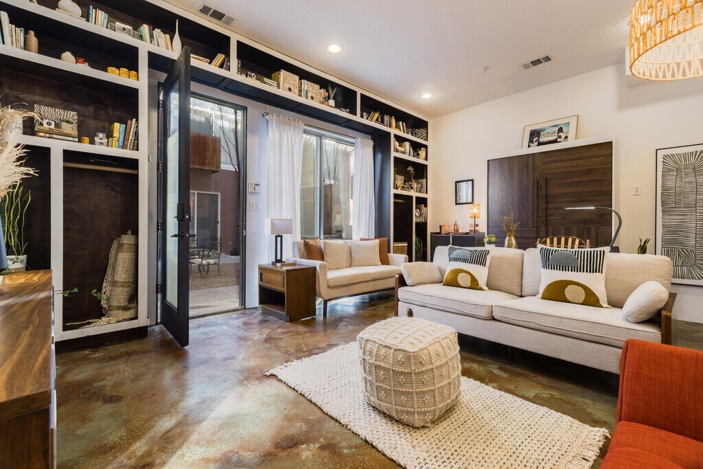 Stylish Loft Living in the Heart of the City at the Southern Union Gas Lofts! Experience the energy of downtown Albuquerque in this striking three-story townhouse, a true home away from home. Step through the gated courtyard, surrounded by lush landscaping, and enter a beautifully designed loft that blends modern comfort and urban style. Just minutes from Tingley Beach, the zoo, the aquarium, shopping, and hospitals, the location keeps you close to everything the city has to offer. Inside, discover high ceilings, built-in bookcases, and an open layout with stainless steel appliances and a versatile kitchen island, perfect for relaxing or entertaining. The townhouse features 1.5 tastefully finished bathrooms and spacious walk-in closets, as well as high-speed internet. Distinctive flooring—concrete, wood, and carpet—gives each level its own ambiance, while premise parking and secure gated entry provide convenience and peace of mind. Downtown living never looked or felt this good; come see why this remarkable property could be the one for you. Stylish Loft Living in the Heart of the City at the Southern Union Gas Lofts! Experience the energy of downtown Albuquerque in this striking three-story townhouse, a true home away from home. Step through the gated courtyard, surrounded by lush landscaping, and enter a beautifully designed loft that blends modern comfort and urban style. Just minutes from Tingley Beach, the zoo, the aquarium, shopping, and hospitals, the location keeps you close to everything the city has to offer. Inside, discover high ceilings, built-in bookcases, and an open layout with stainless steel appliances and a versatile kitchen island, perfect for relaxing or entertaining. The townhouse features 1.5 tastefully finished bathrooms and spacious walk-in closets, as well as high-speed internet. Distinctive flooring—concrete, wood, and carpet—gives each level its own ambiance, while premise parking and secure gated entry provide convenience and peace of mind. Downtown living never looked or felt this good; come see why this remarkable property could be the one for you.