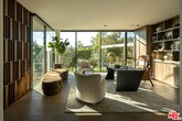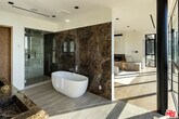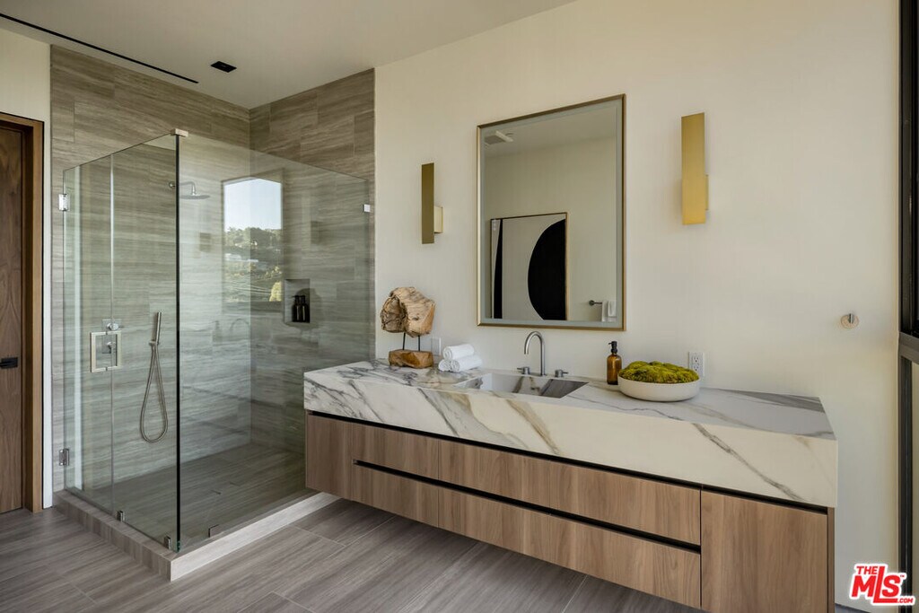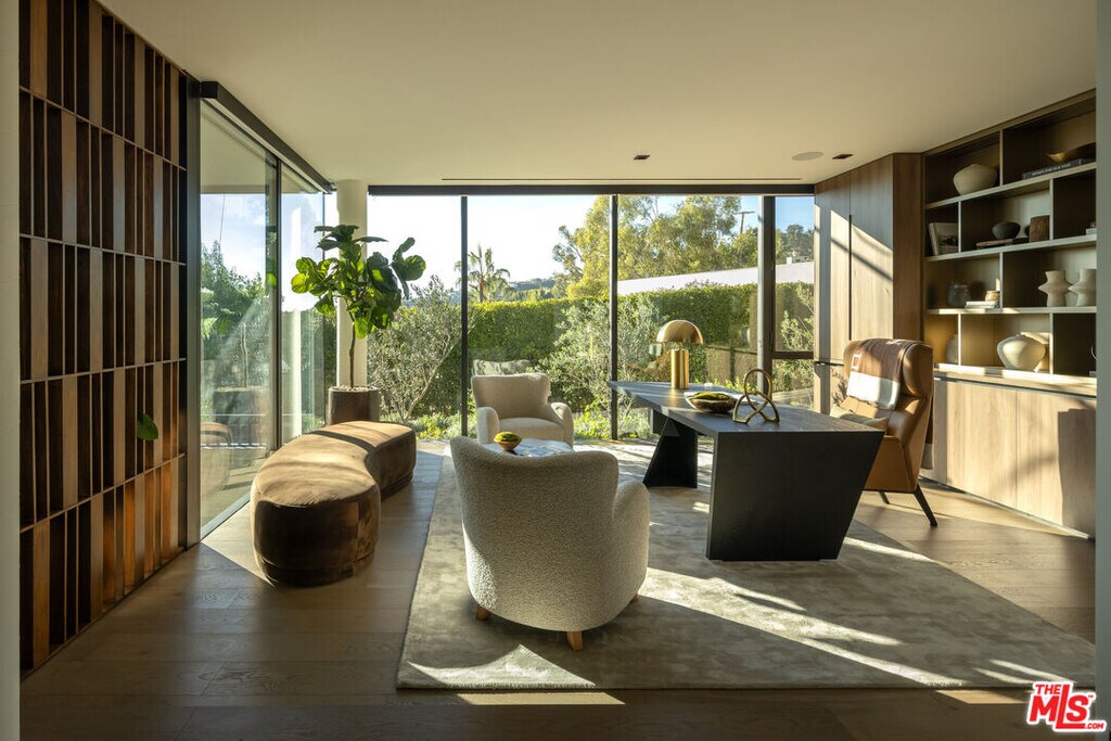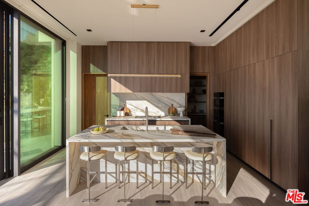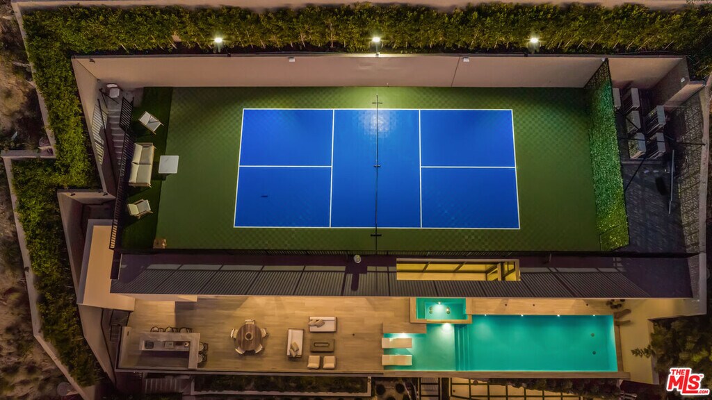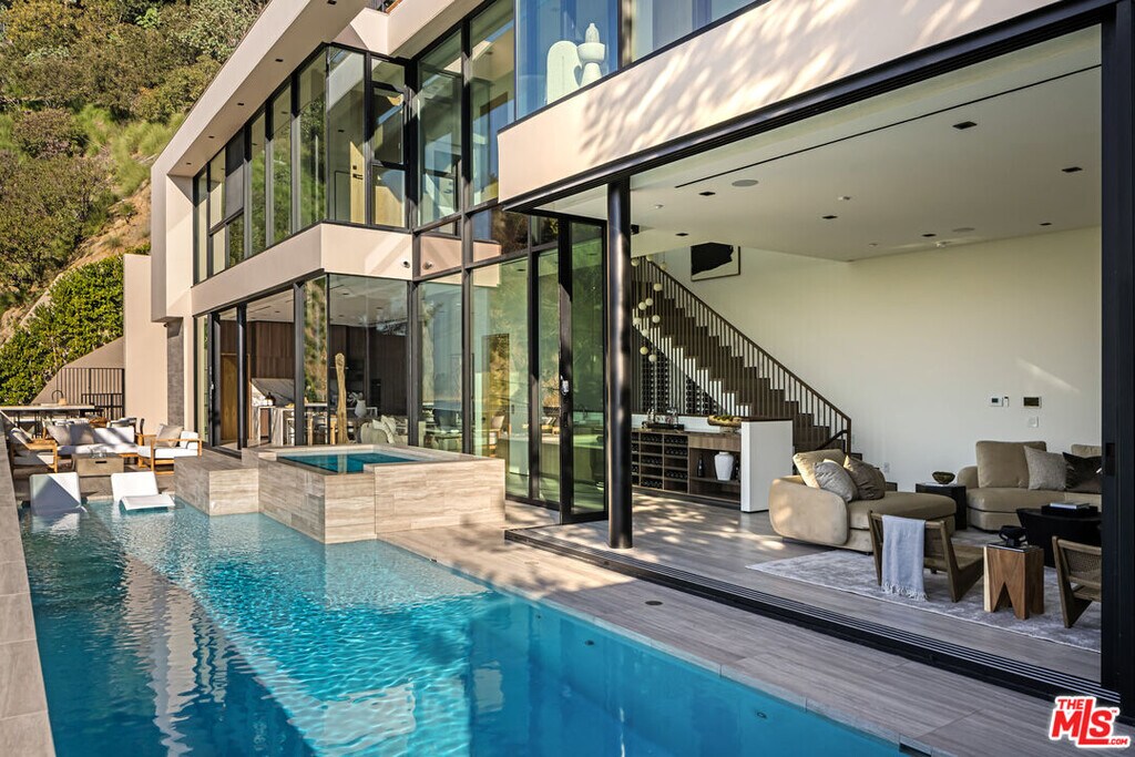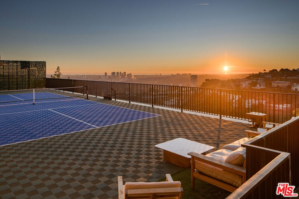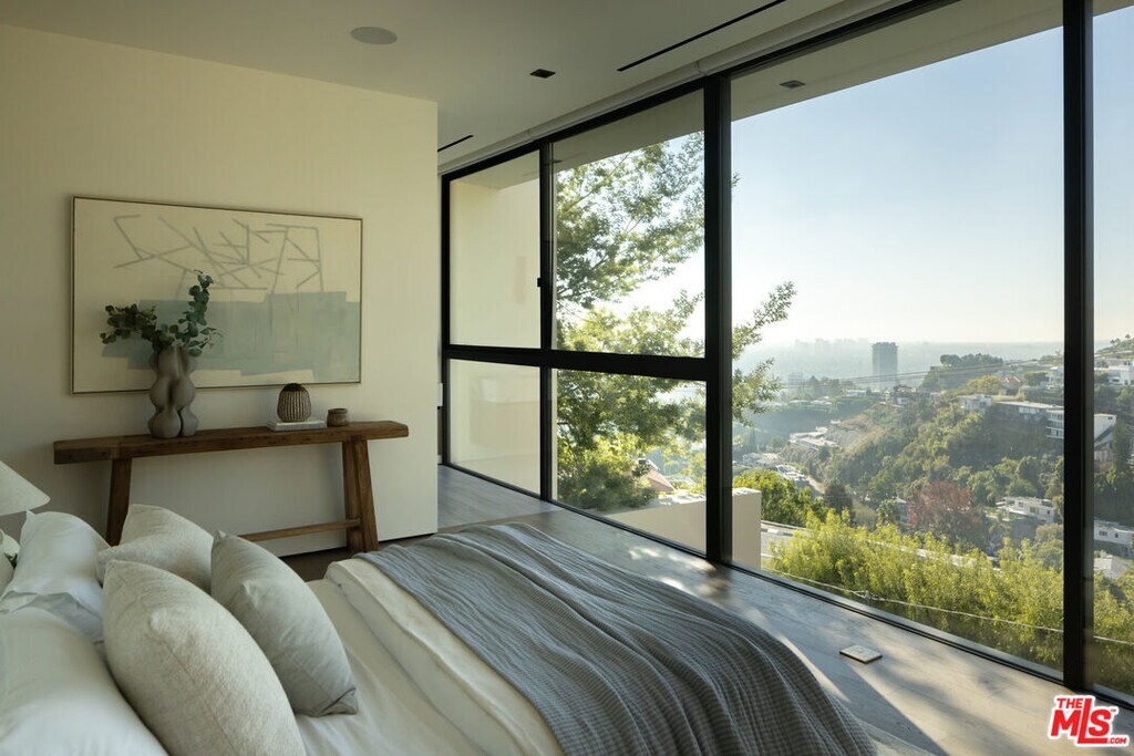 This newly constructed Classic Modern Hollywood Hills residence spans approximately 6,000 square feet and reflects a level of quality, design, and execution rarely found in new construction. Conceived and built by well known, experienced, design-driven team, the home emphasizes thoughtful architecture, refined materials, and seamless livability throughout. The floor plan offers four bedrooms plus a dedicated office, anchored by wide-plank walnut floors and travertine stone that bring warmth and cohesion to the interiors. The kitchen is outfitted with a full suite of Miele appliances. Floor-to-ceiling Fleetwood doors and windows frame sweeping ocean and city views while creating effortless indoor-outdoor flow. Every element of the home was carefully considered, from the proportions of the living spaces to the precision of the finishes. Amenities include an elevator, full smart-home integration, generous storage, wet bar, and wine refrigeration. A three-car garage with additional driveway parking an uncommon luxury in the Hills adds both convenience and functionality. Outdoor spaces are equally well executed, featuring a pool and spa, outdoor kitchen, full bar, fire pit, and a private pickleball court, all designed to maximize privacy, views, and year-round entertaining. This is a highly refined, turnkey offering that blends architectural integrity with modern luxury living in one of Los Angeles' most sought-after settings. MLS# 26669395