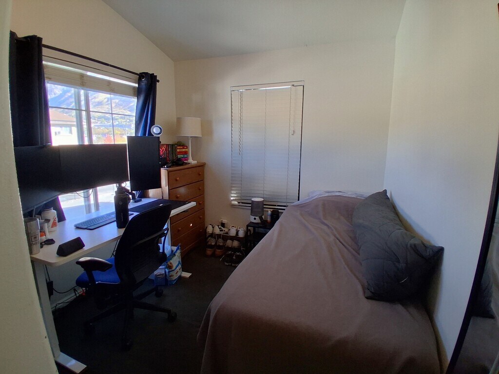 MOUNTAIN VISTA #6 W/S/S CONTRACT: Dec 29, 2025 - Aug 14, 2026 Private Upstairs Room (1 Available): $550/Mo + Utilities + $16 Tenant Liability Waiver Program - Utilities: $20 (Water, Sewer, Trash) + Actual (Gas, Electricity) + $12 Utility Handling Fee Located 1 block south of VASA Fitness and 5 blocks southwest of BYU campus, the Mountain Vista townhomes are a perfect three story 4-bedroom, 2.5-bath townhome. This unit has 1 master room and 3 private rooms (2 up and 1 down). The living room and kitchen are large with bay windows creating some extra space. The unit is fully furnished and includes a washer/dryer in the unit as well as a dishwasher. There are 2 assigned parking spaces as well as an open lot for additional parking. Mountain Vista is near the Arcadia stop for BYU Ryde station and the bus stop at VASA. Year contracts run through August 2026. The deposit is equal to two times the monthly rent rate up to $1000. Total rent owed is divided into equal payments due on the first of each month. Tenants are responsible for actual utilities used, which will be posted to your online account where you pay rent. The unit is wired for Google Fiber. Tenants are responsible for setting up and paying for their own internet account. Located across from the LDS Multi-Stake building. *No Pets Allowed* Unit includes: - fully furnished - washer/dryer in unit - dishwasher - two assigned parking stalls per unit - open parking lot Schedule a showing by calling Apply at *Prices and availability subject to change