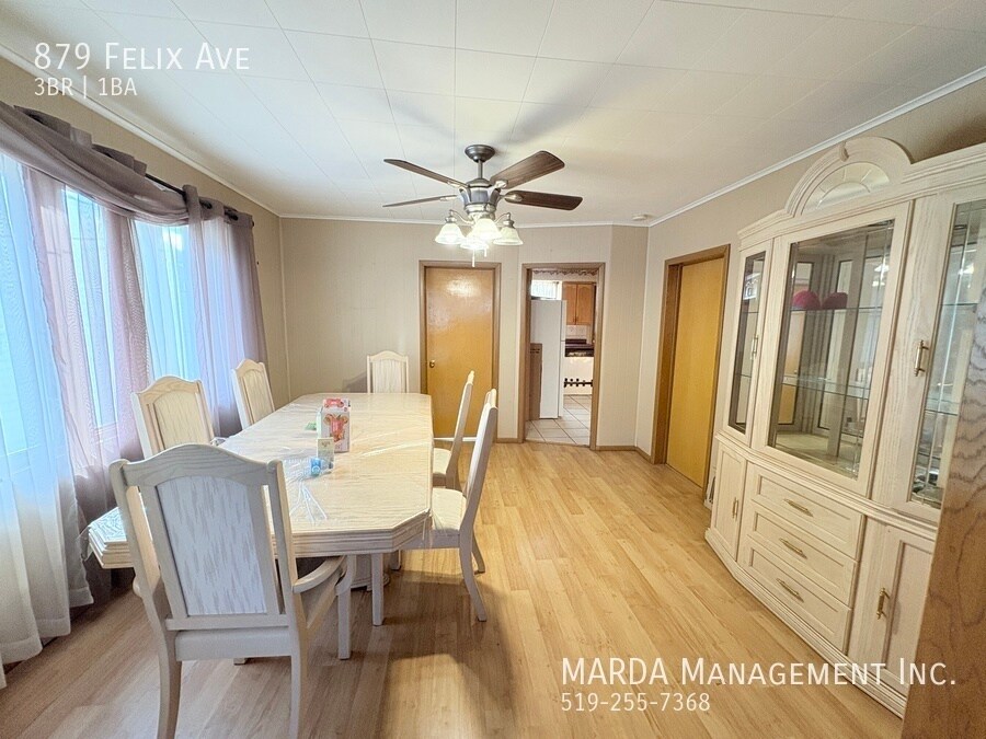 Welcome to 879 Felix, a charming 3 bedroom, 1 bathroom home located on Windsors west endjust a short walk to the University of Windsor. This property is ideal for mature students, working professionals, or a single-family household seeking a comfortable and convenient space. The main floor features a spacious living room and dining room, offering plenty of room for relaxing or hosting. All three bedrooms are well-sized and include closets for easy storage. The bathroom features a soak-in tub/shower combo, a vanity, and built-in wall storage for added convenience. The kitchen includes plenty of cabinetry and comes equipped with a gas stove and dishwasher, making everyday cooking a breeze. In the unfinished basement, youll find tons of additional storage space along with an in-suite washer and dryer. Enjoy the outdoors in your fully fenced backyard, complete with a shed for extra storage. Also enjoy driveway parking. Tenants are responsible for hydro, gas, water, lawn care and snow removal. First and last months rent and a credit check are required. Professionally managed by MARDA Management, offering 24/7 maintenance support and easy, convenient rent payment options. Call MARDA MANAGEMENT today at or email to schedule your viewing! Fenced Back Yard Front Porch Laminate Flooring No Smoking Allowed Pet Friendly