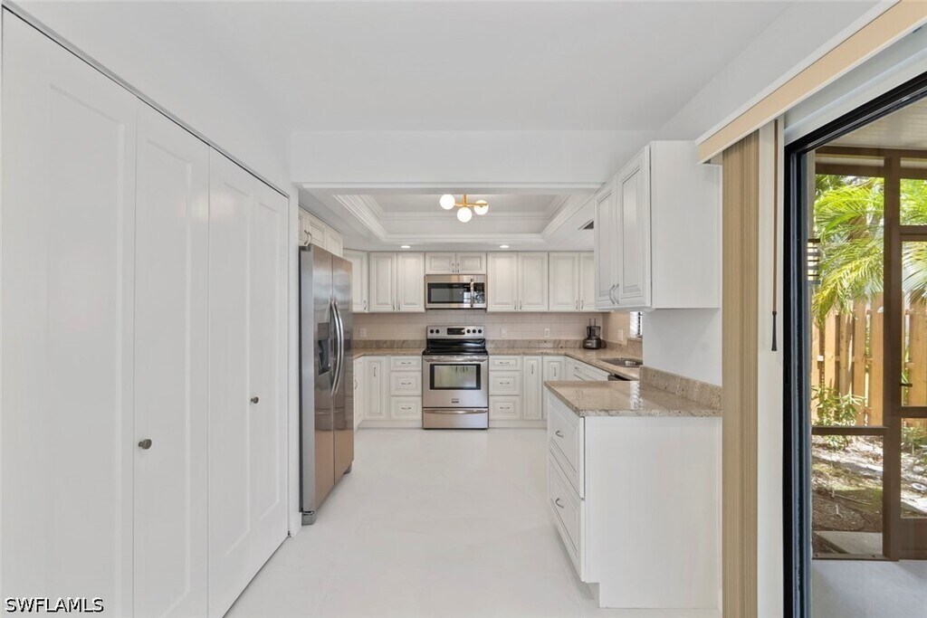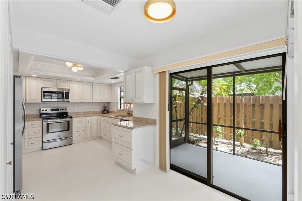 This one has over $100,000 in upgrades and improvements . Fabulous one-story villa with one car garage,completely renovated from top to bottom- No expense spared and attention to detail shows with quality materials and craftsmanship. Kitchen will please the gourmet cook as well as the entertainer -High-end counters - An abundance of cabinets,counters and roller drawers -High end light fixtures,top-of-the-line appliances,tile floors throughout villa and 2 bathrooms .Both baths have been completely renovated .Large lanai allows for dining and relaxing . No need to move the car-Easy Bike or walk to all of the shopping,dining and white sand beaches that Naples is famous for! Enjoy the Naples lifestyle to the fullest here in this one of a kind show place FURNISHED!!!!!