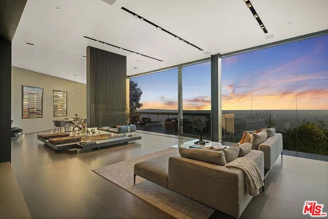 Nestled in the prestigious upper Hollywood Hills, this three-story architectural masterpiece, built in 2017, spans 5,736 square feet of contemporary luxury. Seamlessly blending cutting-edge design with breathtaking surroundings, the home features an open-concept layout adorned with floor-to-ceiling windows, radiant natural light, and impeccable finishes throughout. At its heart lies a chef's dream kitchen, outfitted with top-tier Gaggenau appliances, perfect for culinary enthusiasts and professional caterers alike. For seamless entertaining, the expansive outdoor space boasts a stunning 30-foot heated infinity pool, a relaxing hot tub, and mesmerizing views of the cityscape. Dual decks, multiple fire pits, automated sound systems, and various seating areas create the ultimate backdrop for social gatherings or intimate evenings. The opulent primary suite offers a private retreat, complete with panoramic views of Los Angeles, a luxurious soaking tub, a spacious glass-enclosed shower, and dual porcelain sinks. The residence further impresses with additional bedrooms, media rooms, and game spaces, providing versatility for any lifestyle. Additional highlights include a two-car garage and a state-of-the-art security system. Conveniently located near high-end shopping, trendy restaurants, entertainment hotspots, and chic cafes, this home epitomizes the glamour of life in the City of Angels. Discover unparalleled sophistication and embrace the Hollywood Hills lifestyle today. MLS# 26652065