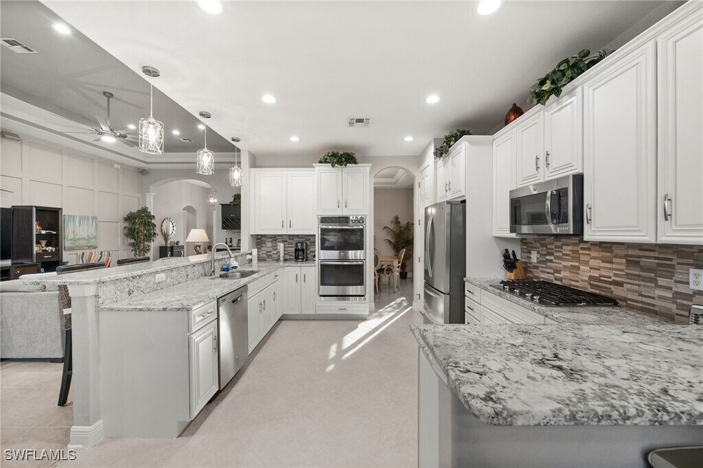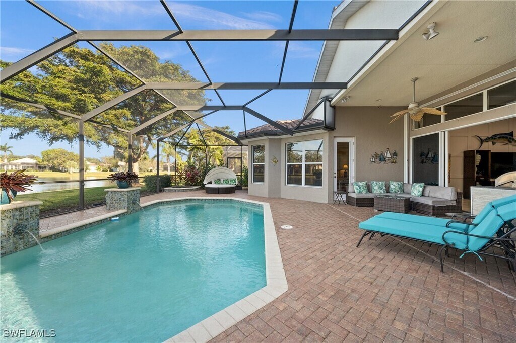 Experience Elevated Living – Short-Term Lease Available in Belle Lago Indulge in upscale living with this impeccably upgraded and customized home,available now for a short-term lease in the highly sought-after Belle Lago community of Estero. Thoughtfully designed with comfort and elegance in mind,this modified Saranac floorplan features four spacious bedrooms,three full bathrooms,and a seamless open-concept layout ideal for seasonal living or transitional stays. From the moment you step inside,you’ll notice refined details throughout—14-foot tray ceilings,8-foot doors,and 5.5-inch baseboards set a tone of luxury. The removal of a kitchen wall enhances the open flow between living,dining,and kitchen areas,creating the perfect setting for entertaining or relaxed day-to-day living. At the heart of the home is a chef’s kitchen,fully equipped with granite countertops,stainless steel appliances,a custom backsplash,and a built-in dry bar. The adjoining great room offers custom millwork and crown molding,creating a warm and welcoming space for guests or quiet evenings in. Step outside to your own private retreat—an expansive lanai with a pool,a summer kitchen,and serene lake views that provide the ideal backdrop for morning coffee or sunset gatherings. Additional highlights include tile flooring throughout with no carpet,a new roof,natural gas service,and the advantage of being located outside of a flood zone for added peace of mind. Conveniently located just minutes from RSW Airport,Coconut Point,Miromar Outlets,and the white-sand beaches of Barefoot Beach and Lover’s Key,this home places you at the center of Southwest Florida’s best attractions. As a Belle Lago resident,you’ll also enjoy access to resort-style amenities such as a geothermally heated pool and spa,a fitness center,tennis,pickleball,bocce,and basketball courts,over three miles of walking trails,and a scenic 14-acre nature preserve. A thriving social committee further enhances the lifestyle by hosting regular events and outings,creating a welcoming and active community atmosphere. Whether you’re in between homes,relocating,or simply looking to enjoy Florida’s lifestyle on a short-term basis,8792 Largo Mar Drive delivers comfort,luxury,and connection in one of Estero’s premier gated communities.