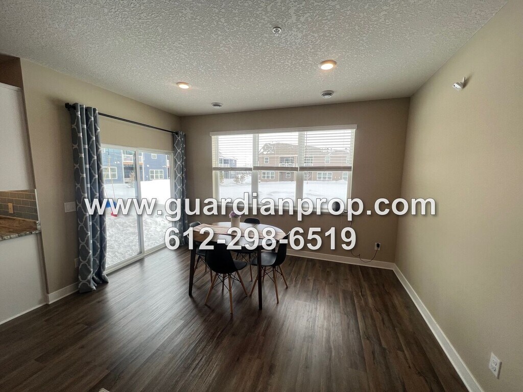 With occupied units, we can only do a showing after an application is approved. Each adult would apply at and upload last two pay statements and proof of other income. Luxury 2020 built townhouse available June 1. Main level has an open floor plan. Living room has a gas fireplace and flat panel tv mount included. Kitchen has granite counters, stainless appliances and a center island. The dining area has a walkout to the back patio. There's also a pantry, several coat closets and a half bathroom on the main level. There's plenty of closet space upstairs between the bedrooms. Primary bedroom has a tv mount, private balcony, walk-in closet and huge private bath with double vanity. There's another full bathroom upstairs off the other two bedrooms. Laundry is conveniently located next to the primary suite. The pink bedroom has been painted neutral. This townhouse also has central a/c, ring video doorbell, smart thermostat, a water filtration system, a 2 car attached garage with an EV charger and alarm pad that can be activated through Rent includes trash, HOA dues, and lawn/snow One small pet (under 35lbs.) is okay with a $50/month pet fee $50 application fee per adult We check income (gross household income must be at least 3 times rent), credit (must be 600+), criminal and rental history Renter's insurance is required Call Dakota at for more information For all units with forced air heating, residents will be enrolled in the Utility & Maintenance Reduction Program at an additional fee of $15 per month. This program ensures that high-quality HVAC filters are regularly delivered to the doorstep, saving our residents 5-15% on energy bills, offers a clean and healthy living environment, and reduces tenant liability. Agent: Dakota DeHaven BROKER: GUARDIAN PROPERTY MANAGEMENT AND SERVICES LLC
