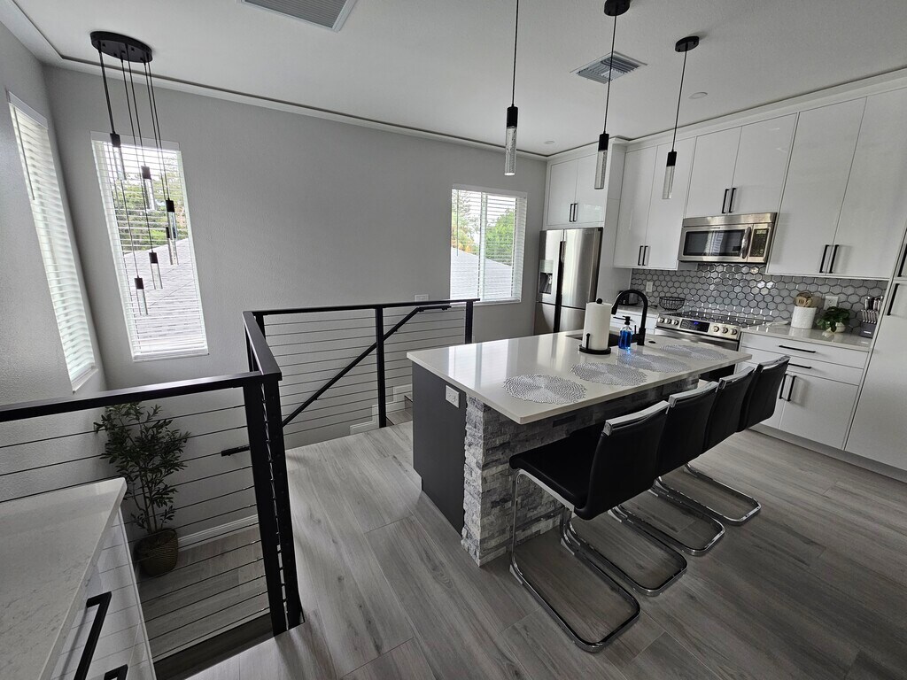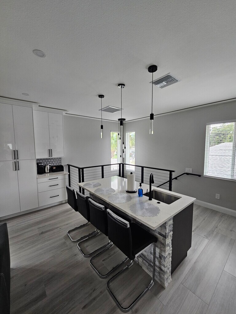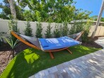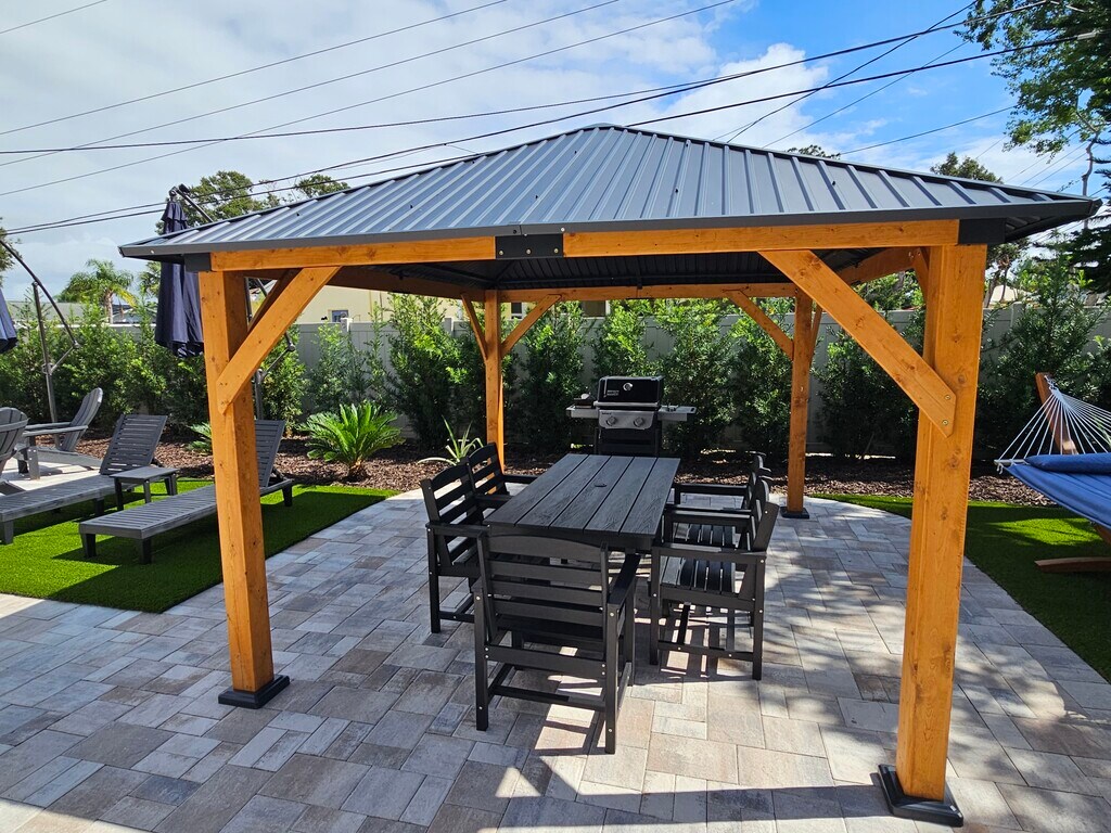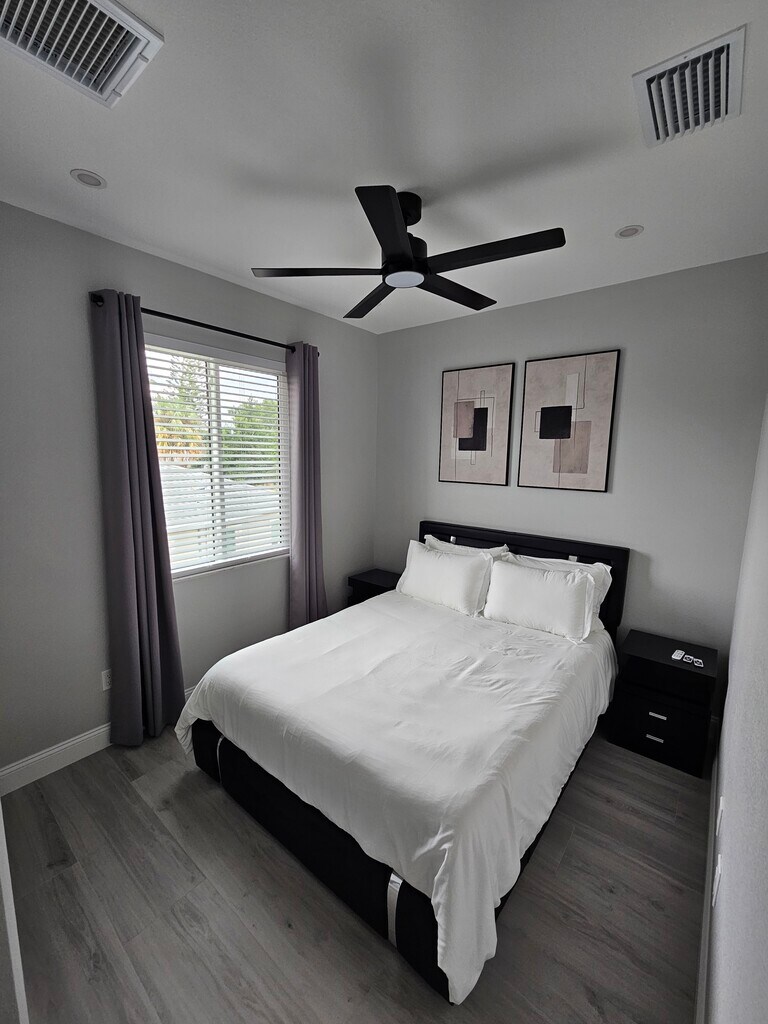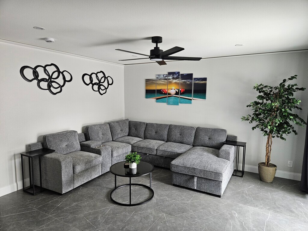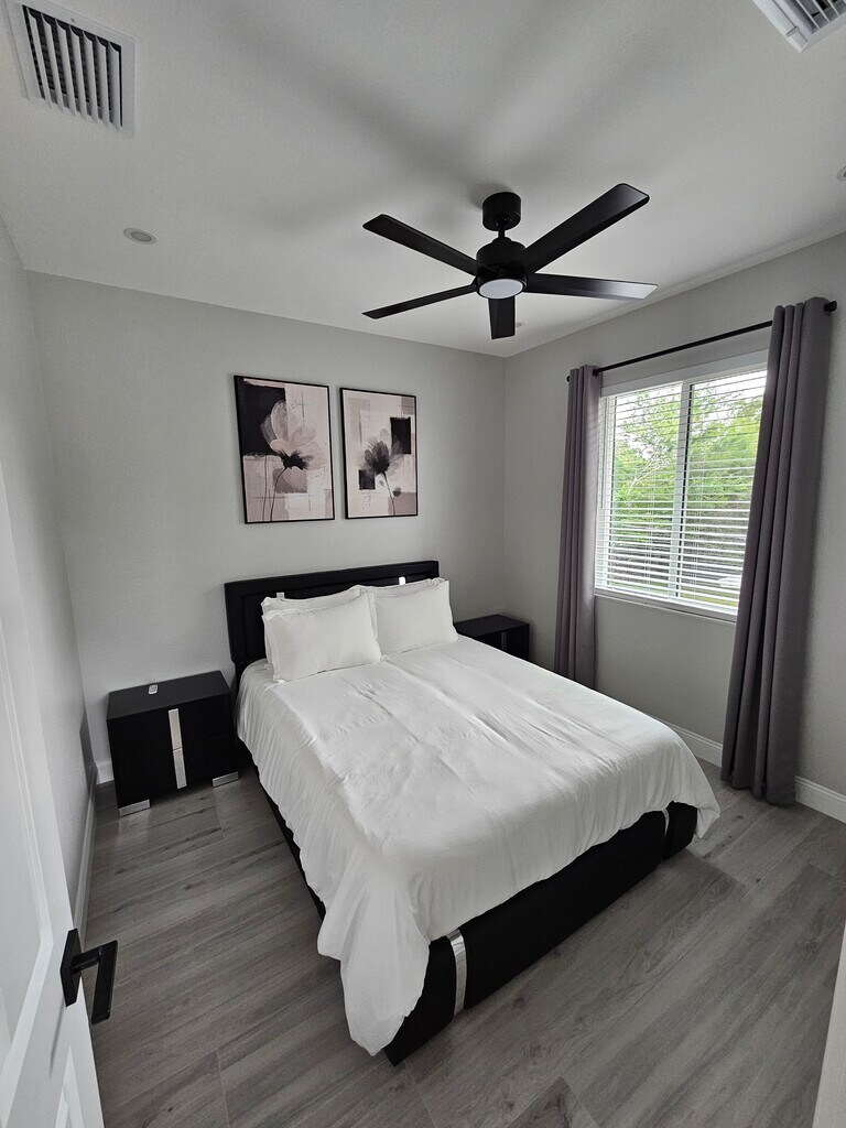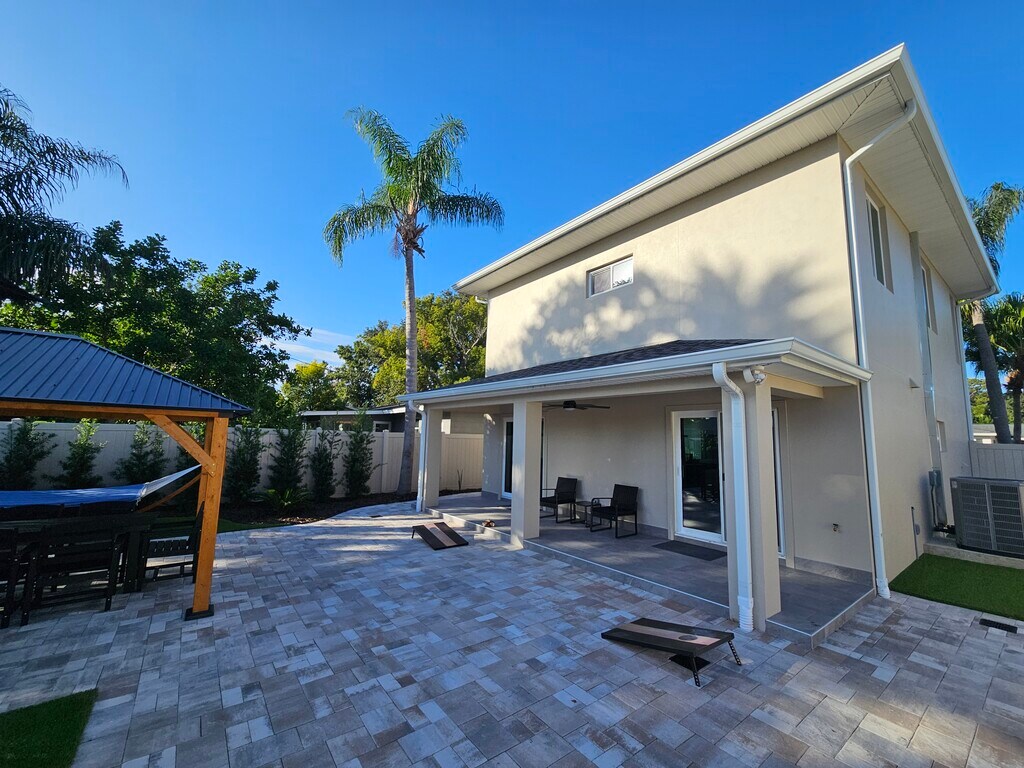 This two-story fully furnished guesthouse is perfect for families, couples, travel nurses, corporate guests, or anyone seeking relaxing extended stay. Located in a quiet and safe neighborhood with easy access to hospitals, dining, shopping, parks and only 6min from the beautiful beaches. Enjoy the bright open layout, fully stocked kitchen and spacious backyard ideal for BBQ, cozy evenings by the firepit, morning coffee, or soaking up the Florida sun. Downstairs, you'll find the inviting living area and game room- complete with everything you need for a fun night in. The game room and upstairs living room both have pullout sofas for extra sleeping space. Utilities included. No pets.