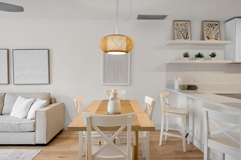 ANNUAL RENTAL COMPLETELY RENOVATED + FULLY FURNISHED 2-bedroom, 1-bath LAKEFRONT villa, where modern elegance meets a breezy, beachy charm in a vibrant and secure West Boca community. Thoughtfully updated with high-end finishes, this villa is move-in ready--ideal for a full-time residence or a serene seasonal getaway! The open-concept floor plan seamlessly blends comfort and sophistication, with neutral tones, modern touches, and inviting decor that create a warm and tranquil ambiance. The new furnishings & window treatments add both beauty and functionality, making this home as practical as it is peaceful. Gorgeous OPEN KITCHEN: The kitchen was COMPLETELY REDESIGNED--walls removed to enhance space and flow, featuring BRAND NEW CABINETRY, QUARTZ COUNTERTOPS