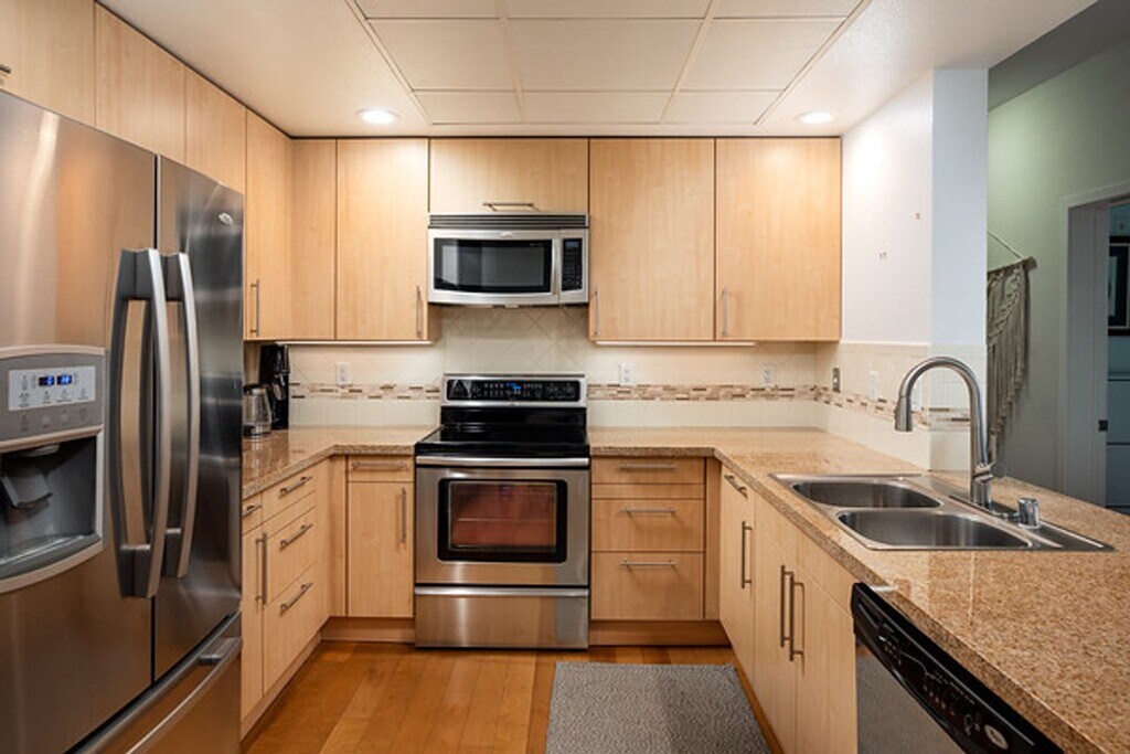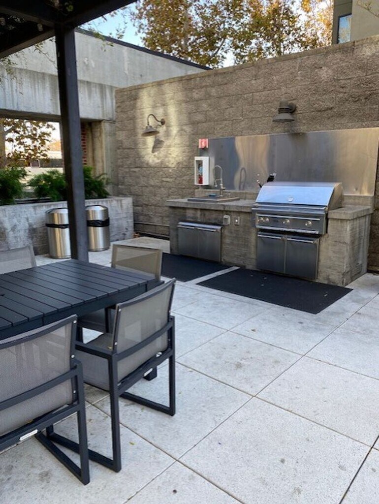 Fully furnished, one bedroom unit in Plant 51. Urban, resort style living including gym, BBQ area, firepit, community room, business center, plus outdoor seating areas with lush greenery and fountains. The unit offers warm and inviting furnishings, including a fully appointed kitchen. This ground floor unit has an open kitchen, spacious living room and dining area. Lovely bedroom with old Plant details. Large bathroom with shower over tub, full mirror that doubles as a cabinet plus additional storage. In unit stacking washer/dryer. Heat and air conditioning. Beautiful flooring throughout (no carpet). One assigned parking space, bicycle storage, and shared EV charging on site. Rent includes: furnishings, water and garbage. Available immediately for one year lease. No short term rentals. The Plant 51 condo complex is located in central San Jose and was formerly a fruit drying and canning facility for Del Monte Corporation. The building was renovated into condominiums that feature the historic brick-and-timber construction of the original structure and added steel for safety. Conveniently located to Diridon Train Station, SAP Arena, Whole Foods, Cahill Park, and all that downtown San Jose has to offer.