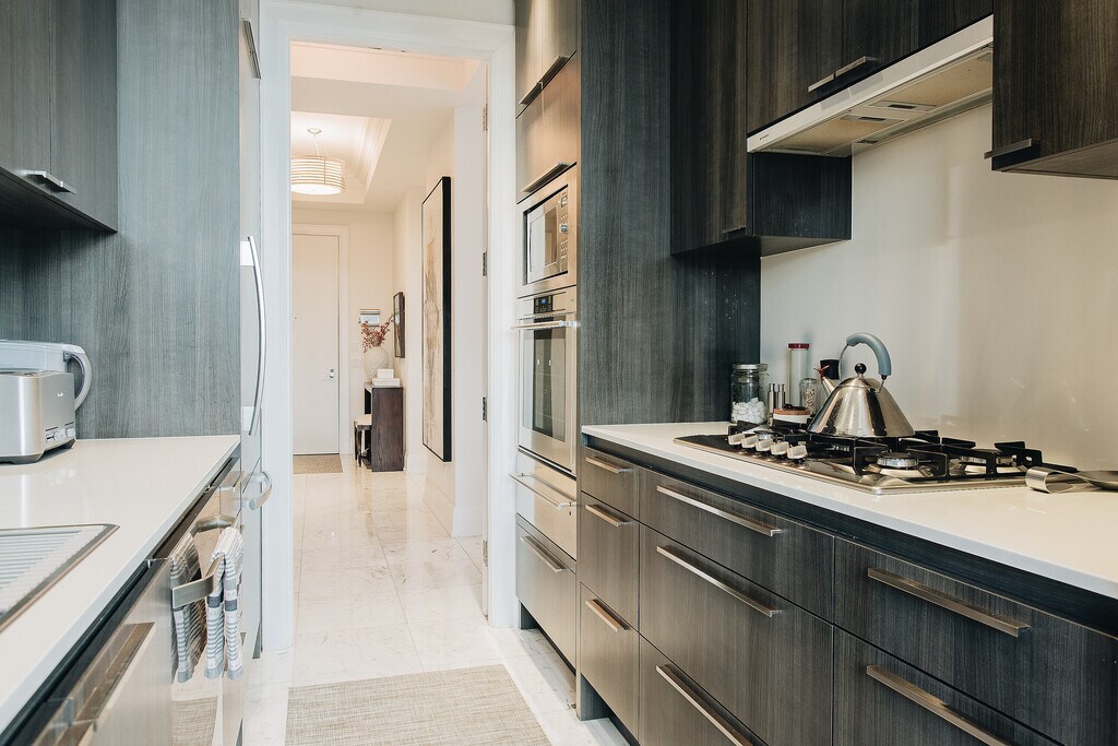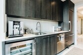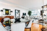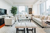 Experience 1,550 plus square feet of refined luxury in this stunning two bedroom, two bathroom corner suite. Designed for the discerning resident, the open-concept living and dining area flows seamlessly to a private balcony with breathtaking southwest skyline views. The chef's kitchen features top-tier appliances and sleek quartz counters, while 10-foot ceilings, marble, and hardwood floors run throughout. Retreat to a lavish principal suite boasting a double-vanity ensuite with a soaker tub, glass shower, and its own private balcony. Floor-to-ceiling windows and premium finishes make this the ultimate urban sanctuary.