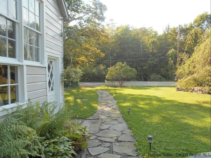 Nestled just a half mile from the iconic Woodstock Village Green,this freestanding 2-bedroom,1,200 sq ft cottage offers the perfect blend of privacy,comfort,and convenience. Whether you're seeking a furnished or unfurnished rental,this serene escape is move-in ready and thoughtfully appointed. Step into a sunlit great room featuring vaulted beamed ceilings,a stone fireplace with wood-burning stove,and a picture window framing stunning views of Overlook Mountain. The home also includes a cozy library/den with a futon,perfect for reading,working from home,or hosting the occasional guest. Outdoors,enjoy two bluestone patios,a shared in-ground pool and spacious deck,a fire pit,and an outdoor gas grillâ€''ideal for relaxing or entertaining in any season. A year-round brook adds to the natural charm of the property. Included in the rent: heat,EP water,waste removal,landscaping,and snow removal. This peaceful cottage offers a rare combination of character,setting,and proximity to the hamlet. Please take the virtual tour. The rent is for the furnished cottage. Unfurnished the rent is 3100 per month.