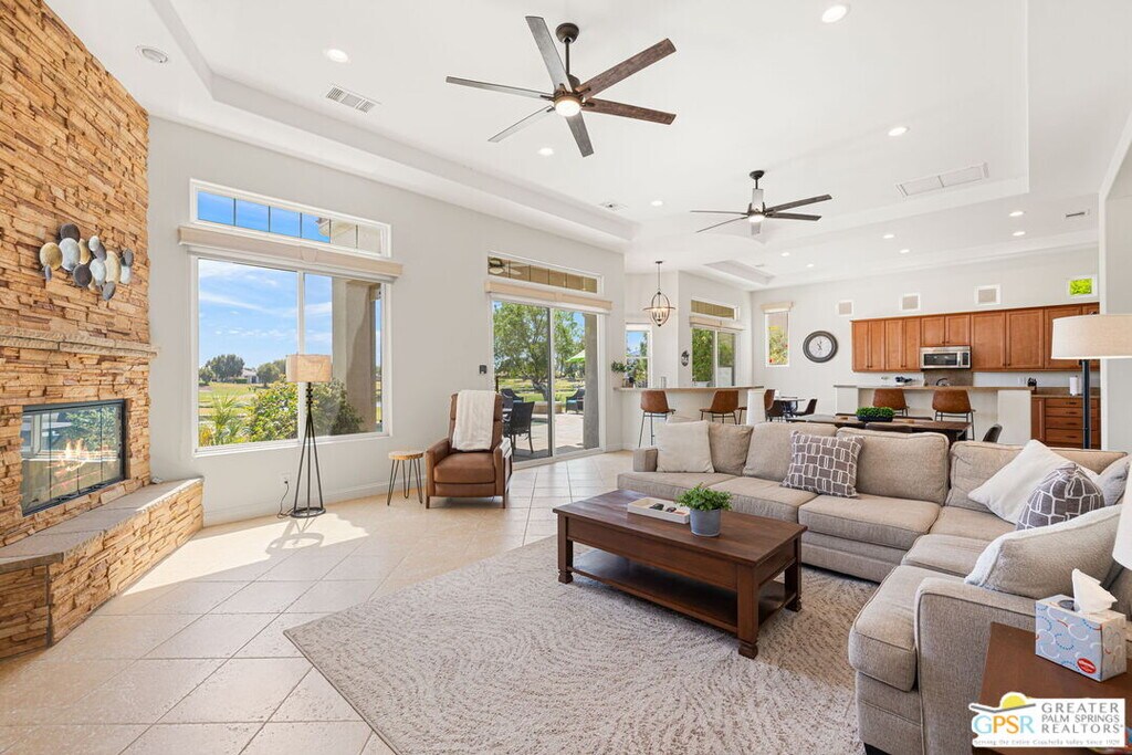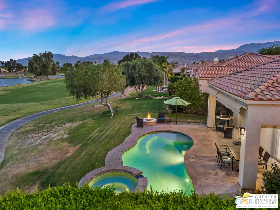*** Monthly Rates: November- December: $7,500 / January-April: $10,000 / May-October: $5,000/ AVAILABILITY: Now through the rest of the year into the 2026/2027 Season. *** Escape to Paradise Your Perfect Snowbird Haven in Rancho Mirage! This beautifully appointed lakefront home sits in the exclusive 24-hour guard-gated community of Mira Vista and offers the ultimate seasonal retreat for snowbirds seeking a luxurious winter escape from November through April. Nestled directly on the 14th hole of the highly regarded Gary Player golf course, this two-bedroom, three-bath home with a spacious den delivers outstanding multi-fairway, lake, and mountain views. The den can easily be set up with a bed for additional guests when needed, giving you flexible sleeping space. Step inside an inviting open-concept great room designed for effortless entertaining and relaxed living. Soaring 12 foot tray ceilings a dramatic stacked stone fireplace and abundant natural light create a warm and welcoming atmosphere. The gourmet kitchen features a large center island granite counters a convenient wet bar and premium stainless steel appliances perfect for preparing meals while enjoying the stunning golf course views. Just outside custom retractable awnings shade the expansive patio where you can unwind by the pebble tech pool and spa gather around the fire pit or simply soak in the serenity of the cascading water feature and lush park like landscaping. The spacious primary suite is a true sanctuary, complete with its own private patio, dual sinks, a deep soaking tub, a walk-in shower, and a generous walk-in closet. Additional bedrooms and the versatile den provide flexible space for guests or a quiet home office. Throughout the home, thoughtful details and premium finishes make every day feel like a vacation. Mira Vista offers an exceptional resort lifestyle with lighted pickleball and tennis courts, plus the convenience of being surrounded by world-class golf, dining, and shopping in the heart of Rancho Mirage. Whether you are teeing off at dawn lounging poolside with your morning coffee or enjoying a glass of wine as the sun sets over the mountains this special residence truly lets you have it all. This turnkey, fully furnished home is available for seasonal lease and ready to welcome you to your desert paradise. MLS ID 26789857PS