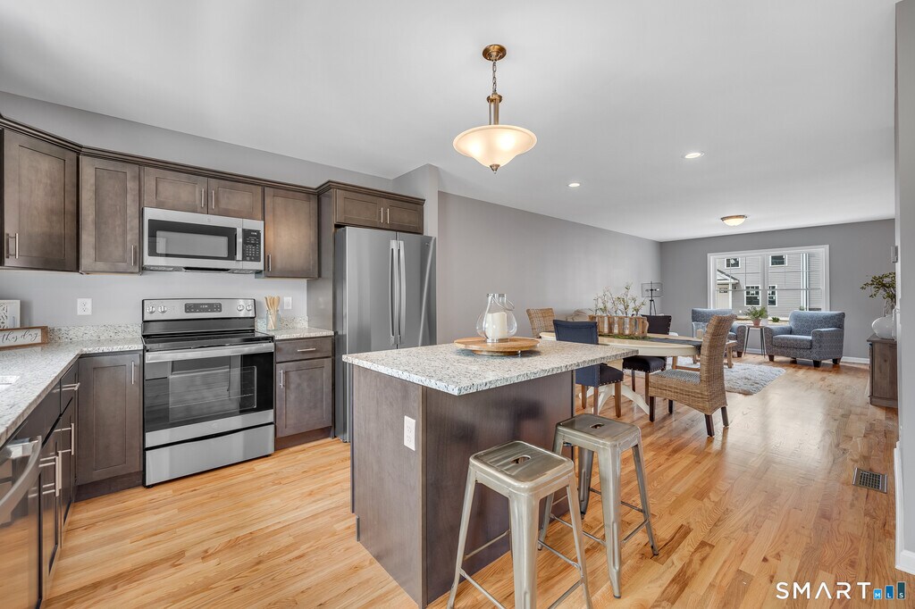 Call for Availability - Like new townhome for rent on the east side of Wallingford. This 2 bedroom, 2 1/2 bath townhome has an open concept living room, dining room & kitchen on the first floor with hardwood floors. The kitchen has granite countertops, island with bar stool seating, stainless steel appliances and a pantry. There is also access to the patio from the kitchen. The half bath and access to the full, unfinished basement with lots of storage complete the first floor. The second floor hosts 2 bedrooms each with its own full bathroom and abundant closet space. The laundry closet on the 2nd floor with washer and dryer provide added convenience. The all electric unit provides an energy efficient electric heat pump furnace and central air conditioning. Tenant is responsible for the electric bill and cable/internet bill. Landlord is responsible for all maintenance including grounds maintenance, snow removal, landscaping, water & trash service. Parking is located directly in front of the unit. No pets allowed and no smoking allowed. Credit check, background check and lease are required. Minimum of 675 credit score. Agent is owner. MLS# 24150092