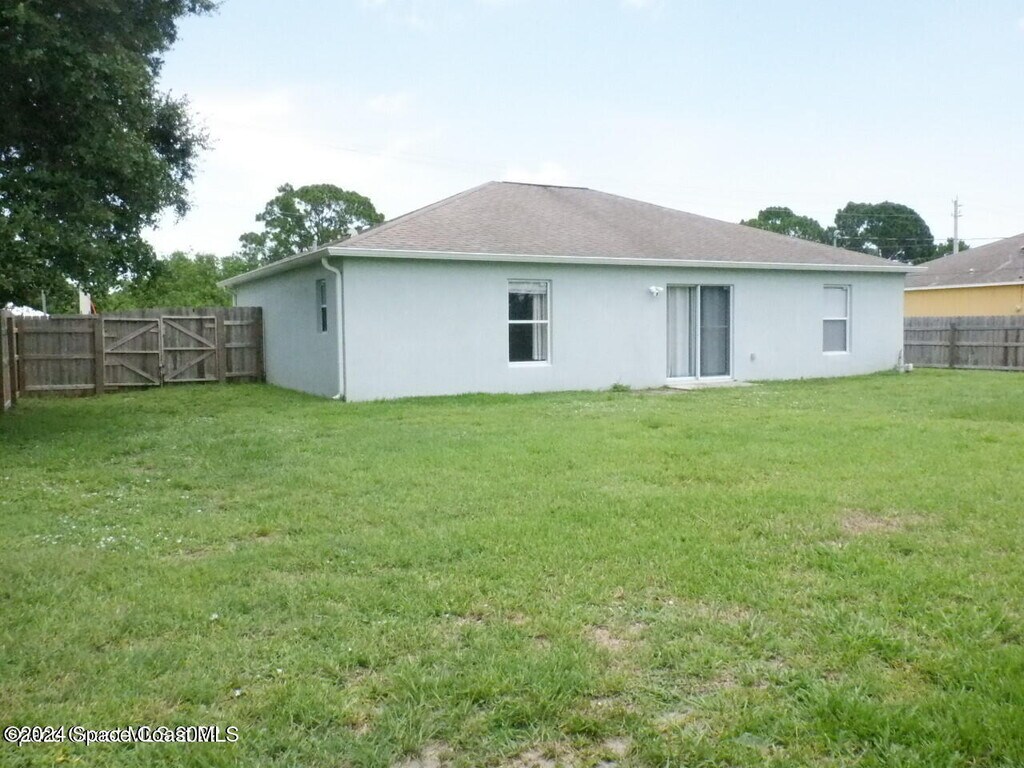 Beautiful home with modern tile and wood laminate flooring throughout. The kitchen has all newer stainless steel appliances including a double oven stove,built in microwave,and a French triple door refrigerator,with a dishwasher and oak cabinets. Open concept with kitchen overlooking living area. Modern lighting and welcoming good sized bedrooms. Large wood privacy fenced back yard with shed. Come make it your new home. one dog ok,no cats please. Conveniently located right off Emerson and Jupiter. Close to Bayside Lakes and Malabar Rd. Close to I95 and not too far from US1. Lots of stores,parks,restaurants and gas stations to choose from. 1 dog ok,no cats please. Must have renters insurance with pet liability insurance. MLS # 1066141