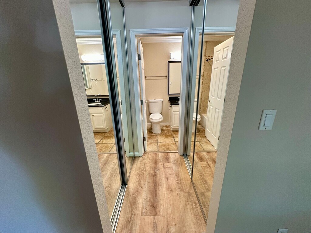 Contact us for details on move-in special! 2 bed 2 bath first floor unit with large balcony and new luxury vinyl plank floors and in-unit washer and dryer. Primary bedroom suite features ample closet space. Shower-over-tub in both bathrooms. Wall unit AC and baseboard heating. Water and garbage included in rent. Community also features pool and hot tub, underground parking (two assigned spots), and fitness center. Centrally located in Sunnyvale near the convergence of Fremont Avenue, Wolfe Avenue, and El Camino Real, minutes from Apple Park and Cupertino Village as well as the Sunnyvale municipal parks at Panama Park and Heritage Park. Within 1-2 miles of multiple shopping centers. Renowned Cupertino Schools: 1.2 miles to Stocklmeir Elementary School. 3.4 miles to Cupertino Middle School. 1.4 miles to Fremont High School. Please note that prospective residents interested in public schools should always verify enrollment opportunities by contacting the respective district (Cupertino Union School District and/or Fremont Union High School District) prior to making a housing decision based on public schools. 1-year lease garbage and water included in rent tenant pays other utilities renter's insurance required pets negotiable sorry, no smoking shown by appointment (please do not disturb occupants)