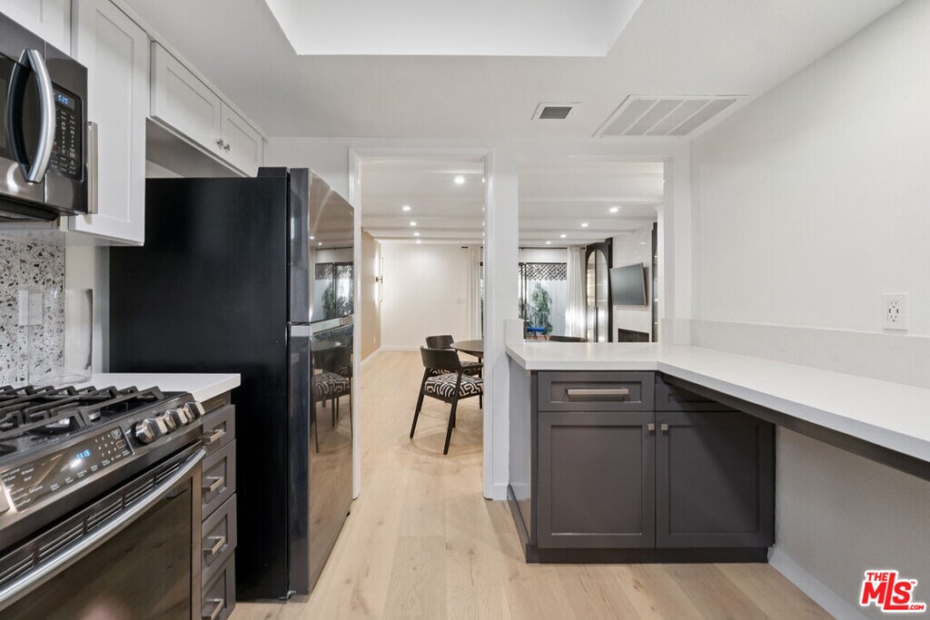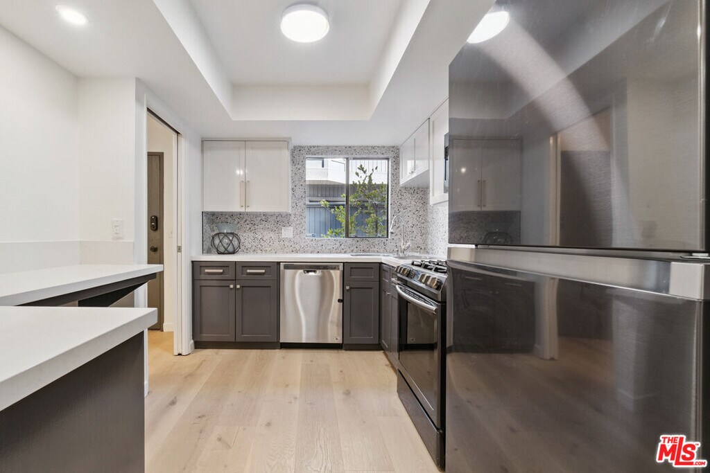 A rare gem in West Hollywood's coveted Norma Triangle, this sleek 2-bedroom, 2.5-bathroom townhome offers the perfect balance of modern design and serene living.The townhouse has been fully updated. A custom bar/wine bar was installed, adding a touch of sophistication and style for entertaining. Every detail has been thoughtfully considered to create a welcoming space that feels both chic and comfortable.Inside, you'll find an expansive open-concept living and dining area centered around a cozy gas fireplace. The recently renovated gourmet kitchen shines with stainless steel appliances and a stylish breakfast bar. Upstairs, both bedrooms feature ensuite bathrooms, with the primary suite offering its own fireplace and a true sense of retreat.Additional highlights include in-unit laundry, central AC/heat, LED recessed lighting throughout, and community perks like a heated pool and two tandem underground parking spaces. Best of all, the location can't be beatjust moments from the San Vicente Bungalows, Petit Ermitage, Pavilions, and West Hollywood Park.This is a rare opportunity to own a fully updated, stylish townhome in one of West Hollywood's most desirable neighborhoods. Can come partially furnished: Flat panel TV; Dining table & chairs; patio bistro table & chairs; brand new King bed frame/mattress. Disclaimer: Virtual/AI staging in some listing photos. MLS# 25587681