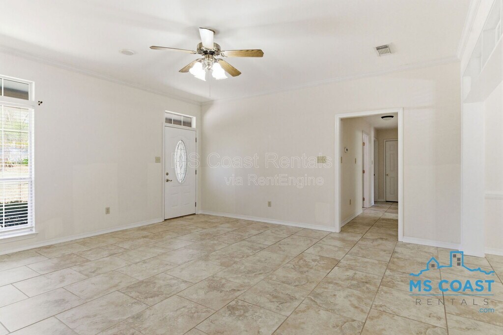 This 3-bedroom, 2-bath home in Diamondhead offers a functional layout with defined living spaces and practical updates throughout. The living room features a brick fireplace with a built-in display shelf. High ceilings and vaulted areas add dimension, and all-tile flooring provides durability and easy maintenance. The kitchen includes updated countertops, new appliances, and modern plumbing fixtures. The dining room provides direct access to the backyard deck through double glass doors. The master bathroom features a double-sink lavatory with a large mirror, while both bathrooms include bathtubs for convenience. The attached two-car garage offers clean, functional storage and parking space. Outside, the back deck overlooks a spacious, fenced backyard complete with a playground. Situated in a quiet, established Diamondhead neighborhood, the home has easy access to I-10 for commuting to Gulfport, Bay St. Louis, and the surrounding Gulf Coast. Nearby shopping, dining, parks, golf courses, and community amenities provide a balance of convenience and relaxed coastal living. All MS Coast Rentals residents are enrolled in the Resident Benefits Package (RBP) which includes renters insurance, HVAC air filter delivery (for applicable properties), credit building to help boost your credit score with timely rent payments, $1M Identity Protection, move-in concierge service making utility connection and home service setup a breeze during your move-in, our best-in-class resident rewards program, and much more! More details upon application. By submitting your information on this page you consent to being contacted by the Property Manager and RentEngine via SMS, phone, or email.