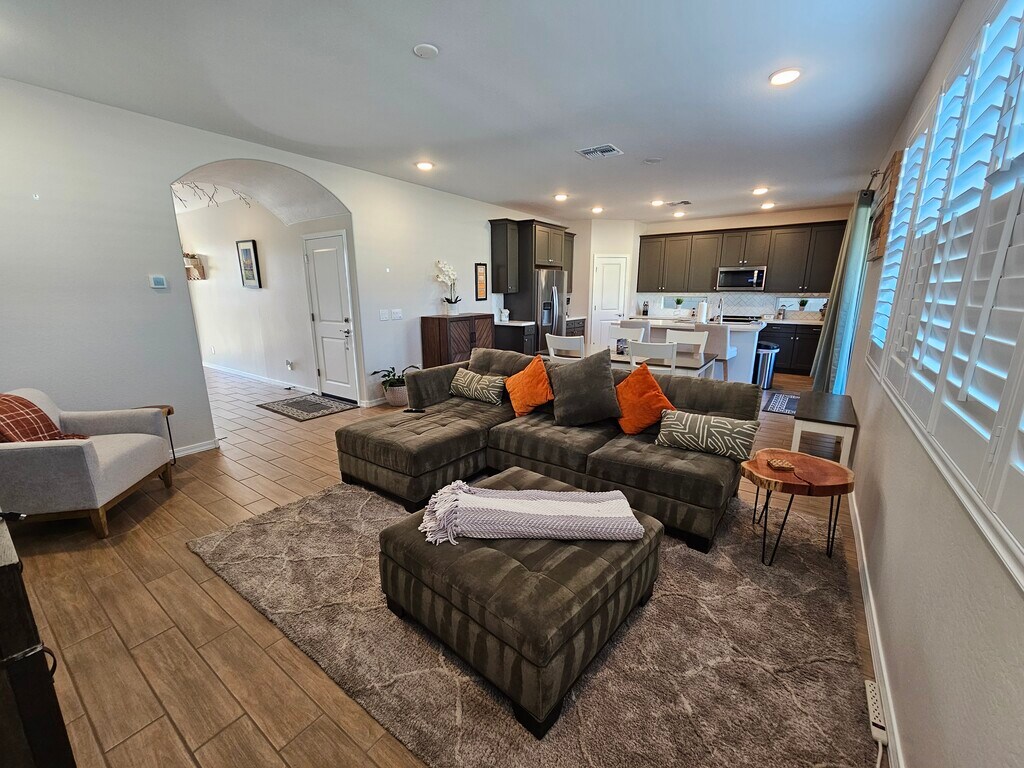 Large home, built Dec 2022, with custom paint and wood shutters throughout. Features include an electric stove, a water softener, a utility sink in the laundry room, and an upstairs loft. Community pool accessible with key fob. HOA community. *6 months to one year lease available License STR0000414