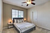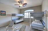 MOVE-IN SPECIAL! 1/2 OFF THE FIRST MONTHS RENT! This gorgeous,Fully furnished 6 bed,3.5 bath,with pool is fantastic!! With instant curb appeal,stacked stone accents & a front porch. Inside,you'll find beautiful tile flooring with an ensuite downstairs,a large kitchen for entertaining,stunning cabinetry,crown molding,rope detail,a built-in China buffet,all Stainless steel appliances,including a double oven,and a gas range. Large food pantry island bar with bar seating. Ceiling fans and blinds throughout. Upstairs laundry room with sink and cabinets. Loft with storage workspace,built-in ceiling speakers,custom painted cabinetry in the bathrooms,master bath with double sinks,separate tub & shower,and multiple walk-in closets. Entertain in the backyard with a built-in BBQ,outdoor sink,and sparkling pooloversized patio with fans,and propane fire pit. The garage has a side service door,an epoxied garage floor water softener,and cabinets. The pool was redone in 2020 and includes storage units along the side in the backyard and sunscreens on many windows. Located close to Westgate (Cardinals Stadium),restaurants,entertainment,shopping,Park West developments,and 101 Freeway.