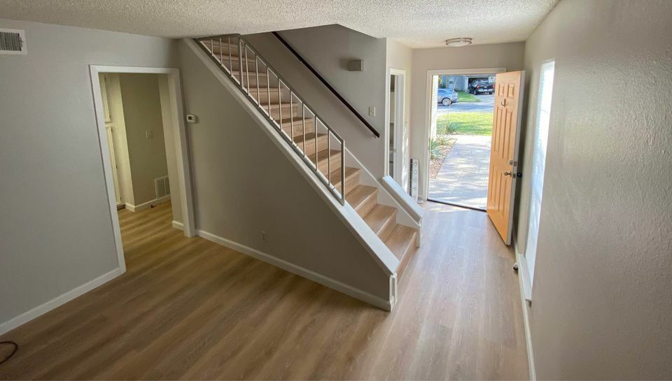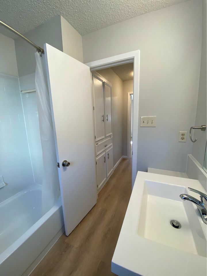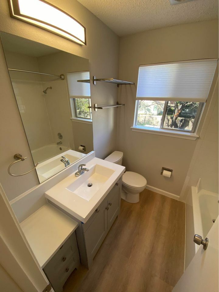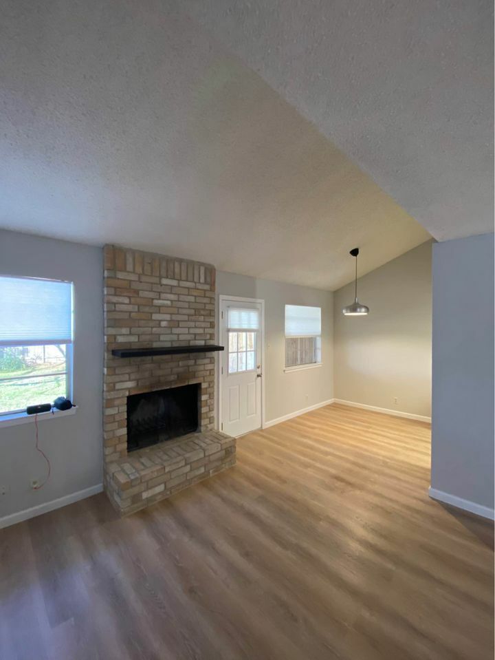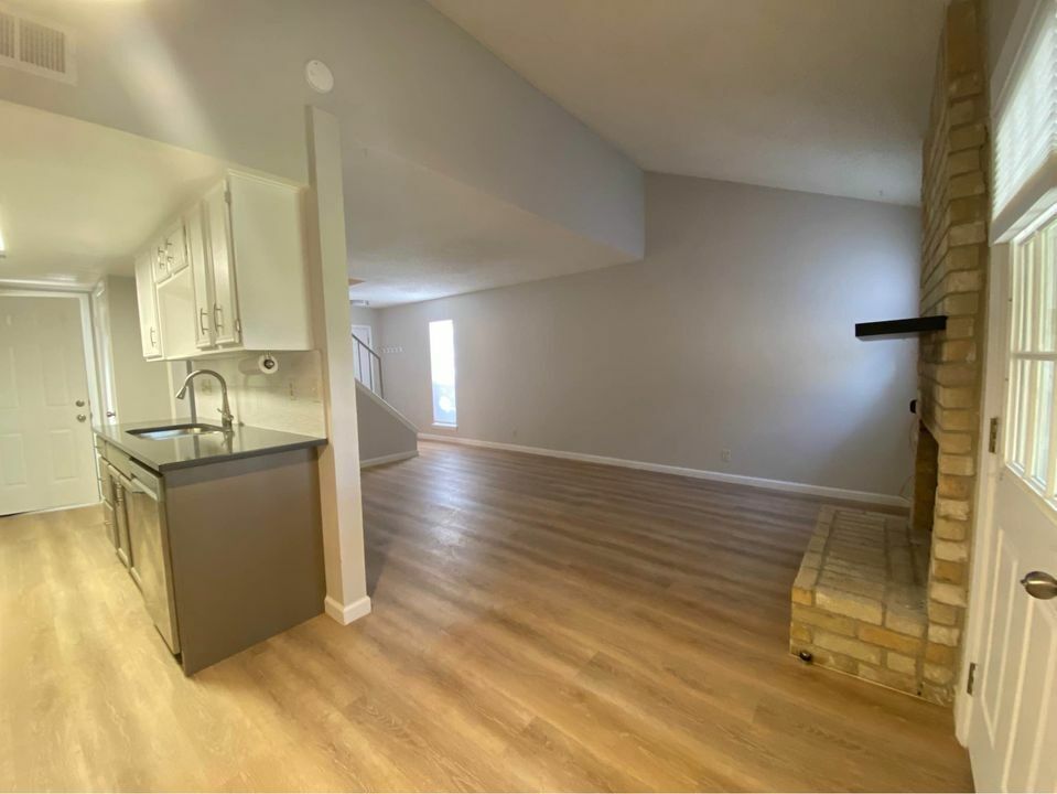 Recently updated, 2-story townhome with vinyl plank flooring throughout. The quartz kitchen counters and all new stainless steel appliances are balanced by a cozy brick fireplace and natural light in the living space. New cabinets in the kitchen and bathroom provide ample storage, along with walk-in closets in both bedrooms.There is an automatic door-opener for the garage, where washer and dryer hookups are located. The backyard has a covered porch for hosting, and enough open space for a furry family member! Easy access to HWY 183, Toll 45 and FM 620 while still remaining tucked away from traffic.