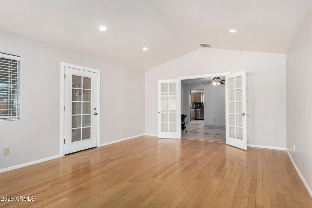 Fantastic rental opportunity! This vast horse property welcomes you with a 3-car garage,an RV gate,an expansive driveway,and an inviting front patio. Inside,discover a spacious living room with vaulted ceilings,a soothing palette,blinds,and durable tile flooring. Double French doors lead to a dedicated family room,perfect for intimate moments with loved ones. The eat-in kitchen comes with granite counters with a matching backsplash,ample wood cabinetry,recessed lighting,a pantry,and essential built-in appliances for an enjoyable cooking experience. The primary bedroom boasts direct backyard access,an ensuite with double sinks,and a convenient walk-in closet. You'll be delighted by the detached guest house,complete with a living area,a kitchen,a bathroom,and a cozy bedroom with a walk-in closet. Imagine enchanting evenings in the sprawling backyard,offering breathtaking mountain views,a covered patio,pristine artificial turf,a putting green,and a refreshing pool. Don't miss out on this incredible gem!