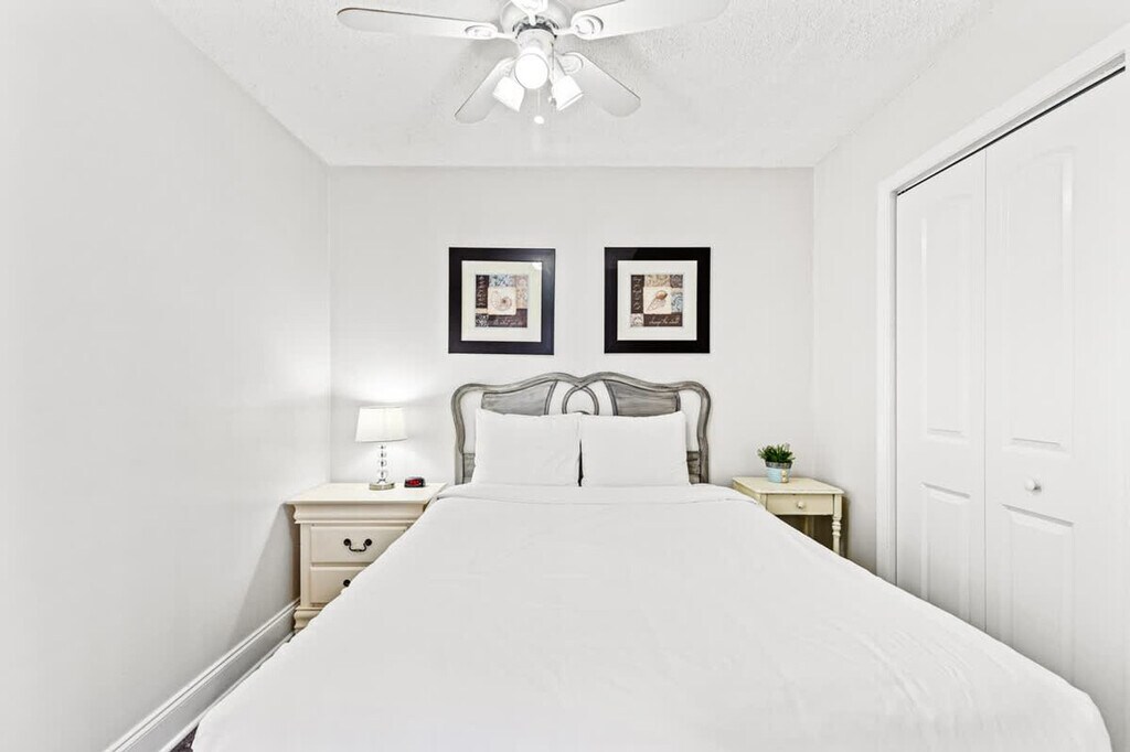 Feel at home in this stunning, fully furnished, 2-bedroom, 2-bath condo on the fourth floor in the heart of Panama City Beach. This unit boasts updates and top finishes, including updated interior furniture, a new washer and dryer, new LVP flooring in both bedrooms, and new paint throughout. The 2-bedroom, 2-bath unit comfortably sleeps seven and features the ideal layout for a family. Includes seasonal beach chairs from 3/15 to 10/15. Parking is available for an additional fee. Moondrifter is ideally located on Thomas Drive, near the area's top attractions and restaurants. Its location and mid-rise stature make it ideal for your next vacation and home away from home. Quiet hours are observed between 10:00 PM and 7:00 AM. The maximum occupancy is 7 guests, including children and infants. Failure to abide by the ordinance may result in fines and ejection. The registering guest must be at least 25 years of age and be held responsible for all other parties and guests of the registering guest for compliance with this reservation. [SI]