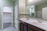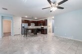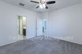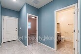 Move in to this terrific home! Enjoy upgraded flooring, fans and lighting throughout. The home features rain gutters, a custom security door at the front entrance and garage ceiling racks for added storage. The owner's suite boasts an executive height vanity with double sinks. Outside, the backyard offers a view fence overlooking a lush green community walking path and synthetic grass. Additional cobblestone tile work enhances the outdoor space, along with sun screens and an outdoor ceiling fan. Apply at Tenant will pay $5.00 monthly admin fee and $24.00 monthly HVAC Preventative Maintenance.Total move-in cost equals 1 month's rent, 1 month's security deposit, cleaning deposit, carpet cleaning fee (non-refundable) and rental tax.