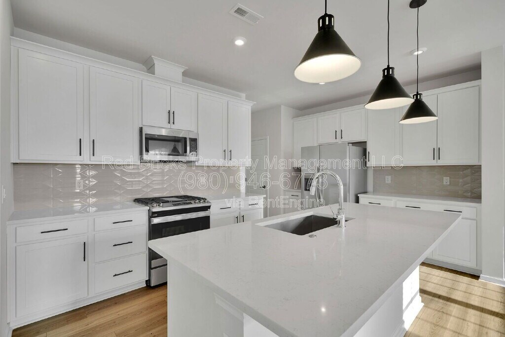This Like-New 2-Story End-Unit Townhome in Trellis at The Commons is Available Now, offering 2,122 sq. ft. of living space with 3 bedrooms, 2.5 bathrooms, and a 2-car rear-entry garage. The main level features a spacious great room and a modern kitchen with stainless steel appliances, white cabinetry, quartz countertops, tile backsplash, gas range, and a pantry. It also includes breakfast and dining areas along with a convenient half bath. Upstairs, you'll find a versatile loft, a primary suite with a large walk-in closet and en-suite bathroom, two additional bedrooms with a full bath, and in-unit laundry. Located in the mixed-use Farmington development, the home offers walkable access to nearby shops and restaurants, along with easy connectivity to I-485 and Rocky River Rd. Lawn maintenance and HOA fees are covered by the owner, and refrigerator, washer and dryer are included at no extra cost. Water, Sewage, Trash, Gas, Internet and electricity are the tenant's responsibility. All applicants 18+ must pass credit and background checks, provide proof of funds, and pay a non-refundable application fee. Minimum 1-year lease required, no subleasing. Security deposit: 1 month for credit above 650, 2 months for credit above 600. By submitting your information on this page you consent to being contacted by the Property Manager and RentEngine via SMS, phone, or email.